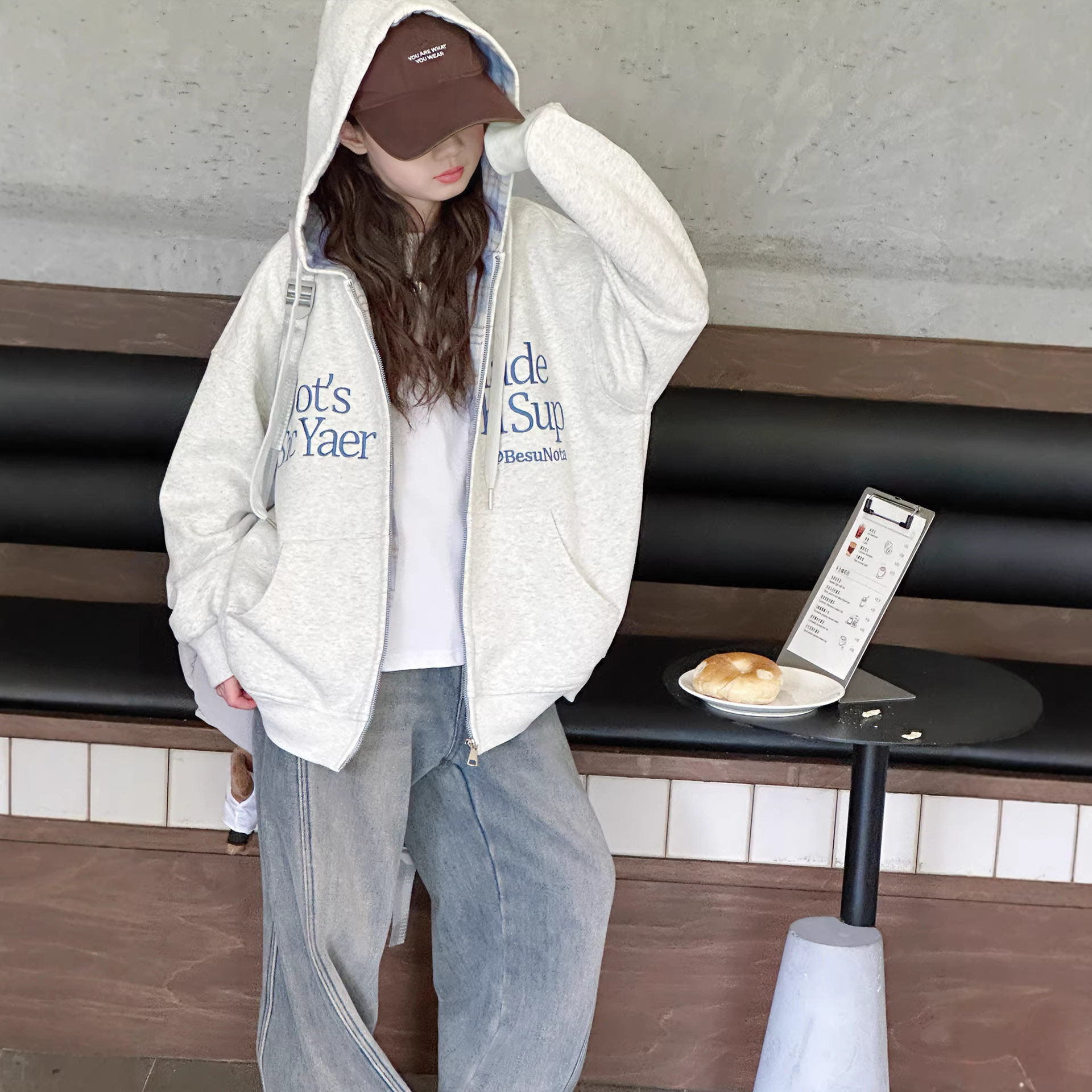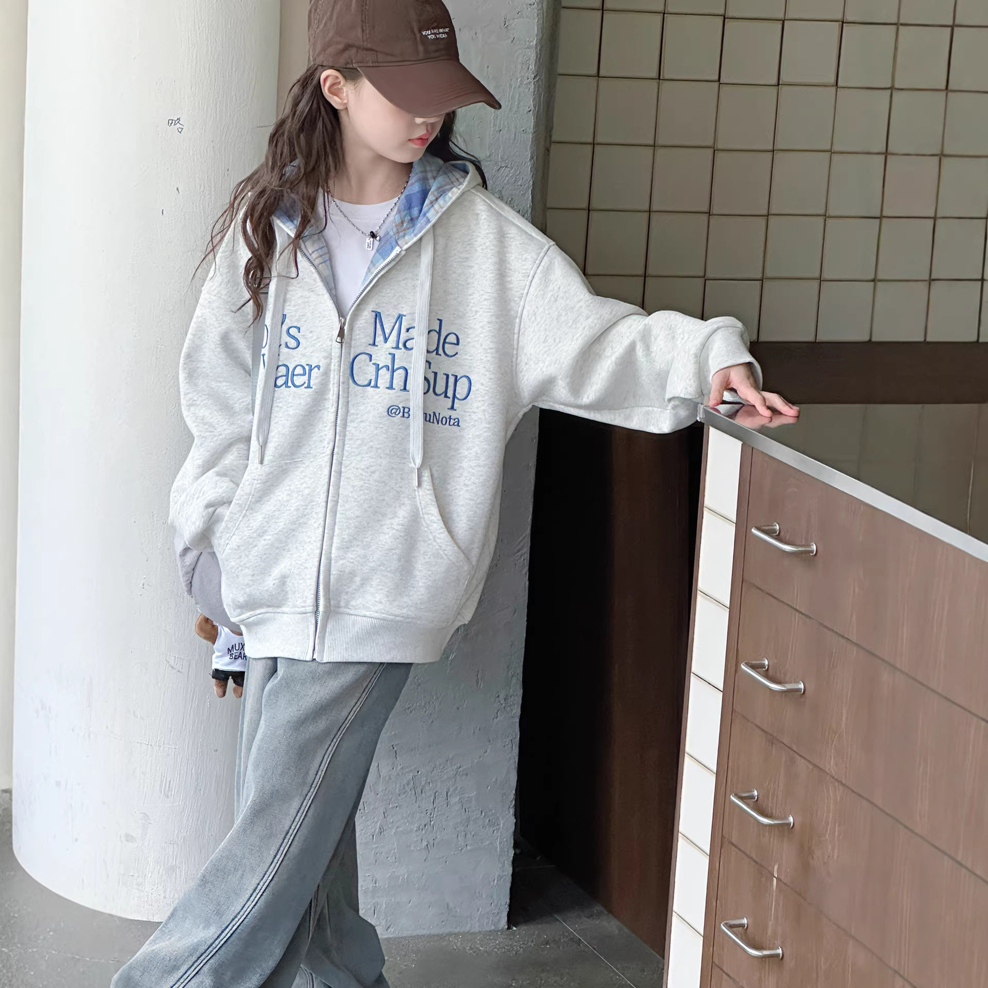 女童外套春装2026新款女大童洋气时髦连帽卫衣宽松休闲拉链衫开衫
