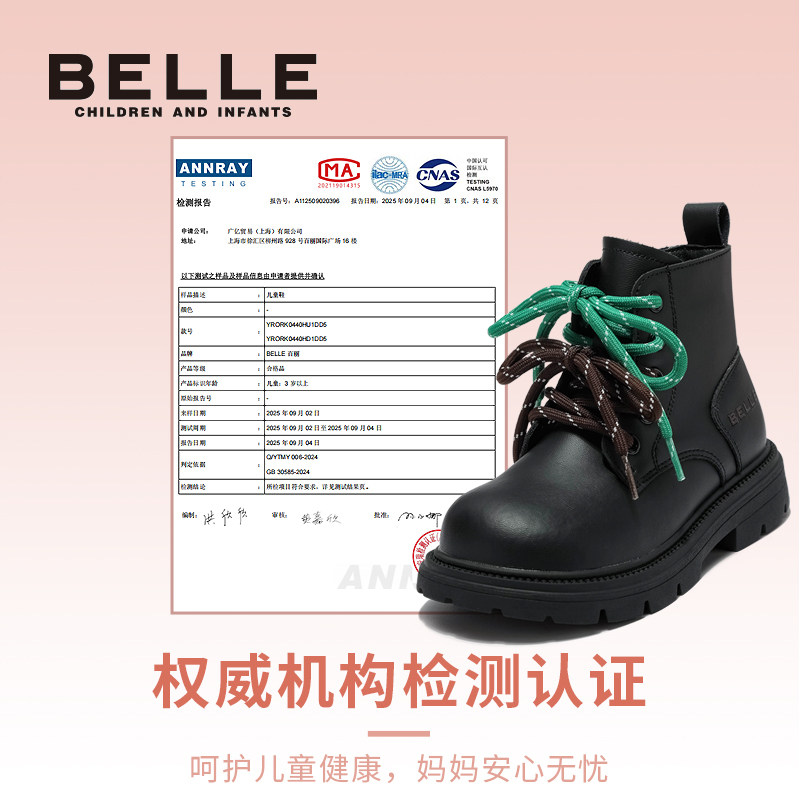 百丽童鞋女童马丁靴2025冬季新款加绒儿童短靴子男童骑士靴中大童