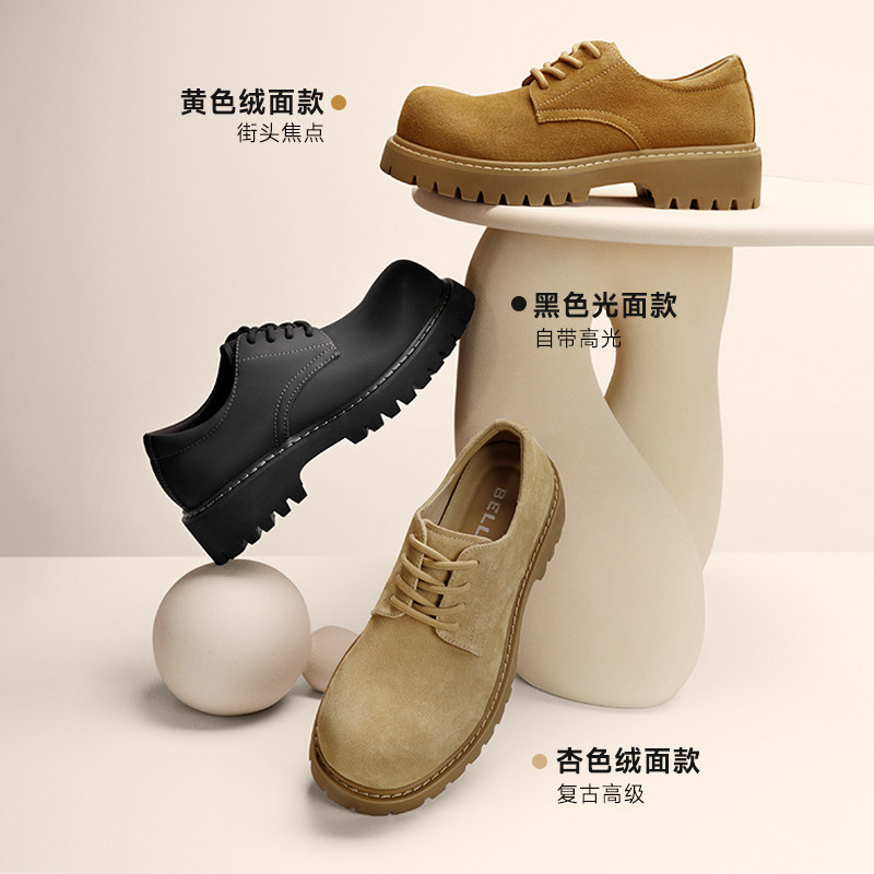 张凌赫同款百丽男士厚底增高休闲皮鞋男真皮德比工装大头鞋A2040