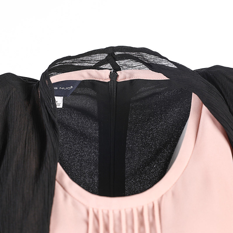 靓诺时尚优雅气质长袖连衣裙春夏新款肉粉色假两件连衣裙LL16149A