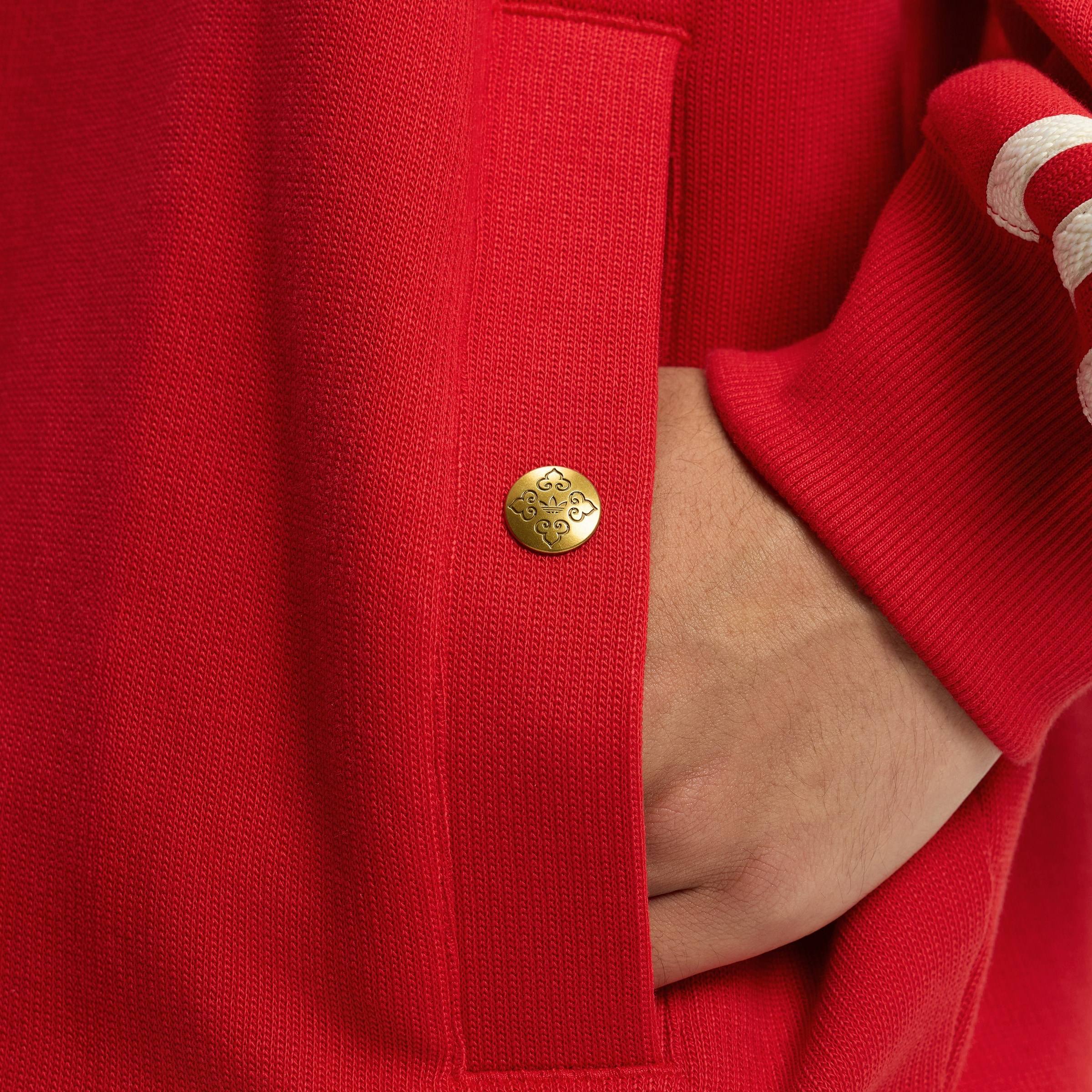 阿迪达斯三叶草卫衣男款2025新款红色本命年马年运动连帽套头衫男