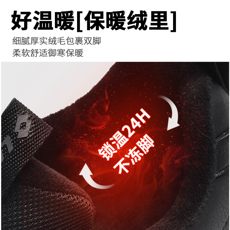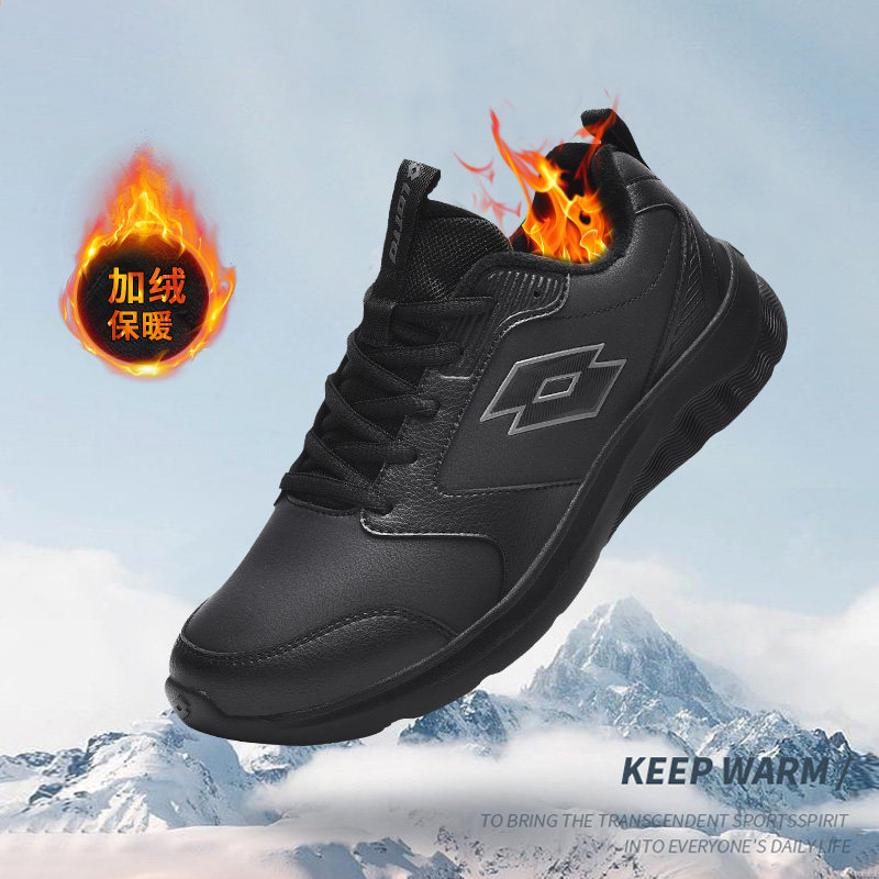 乐途男女秋冬皮面加绒棉鞋跑步鞋超轻防滑减震运动鞋黑色旅游鞋男