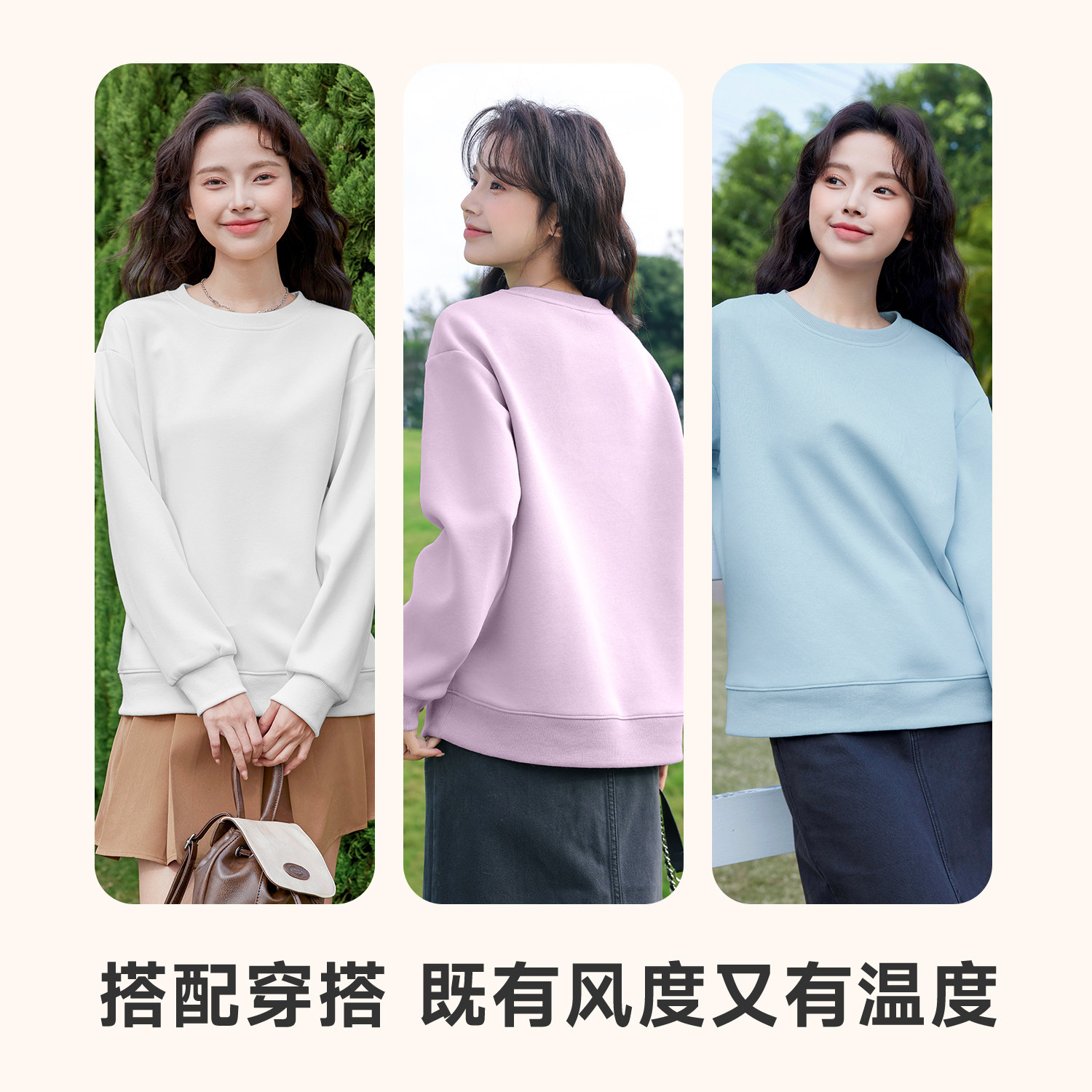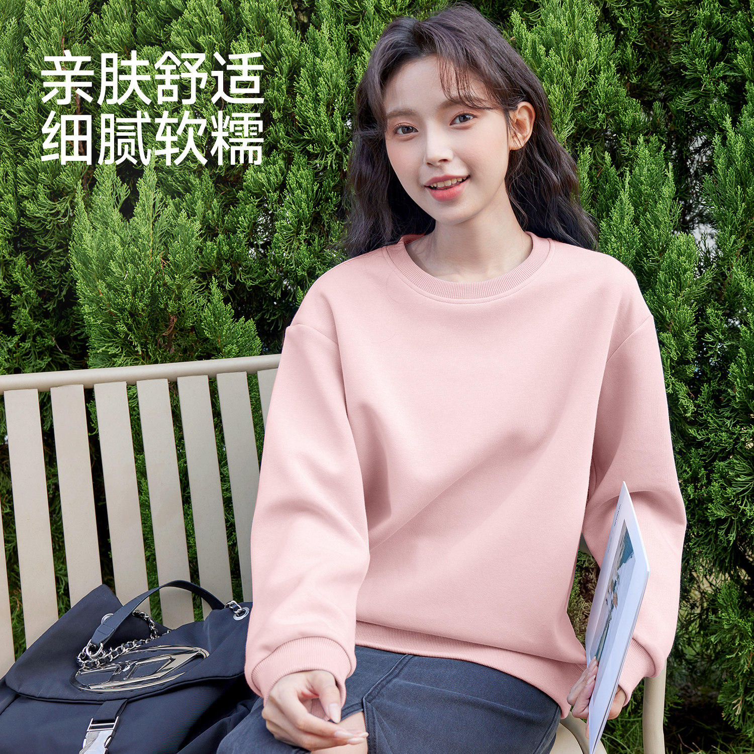 班尼路S&K粉色圆领卫衣外套女款2026春秋新款小个子胖mm大码上衣H