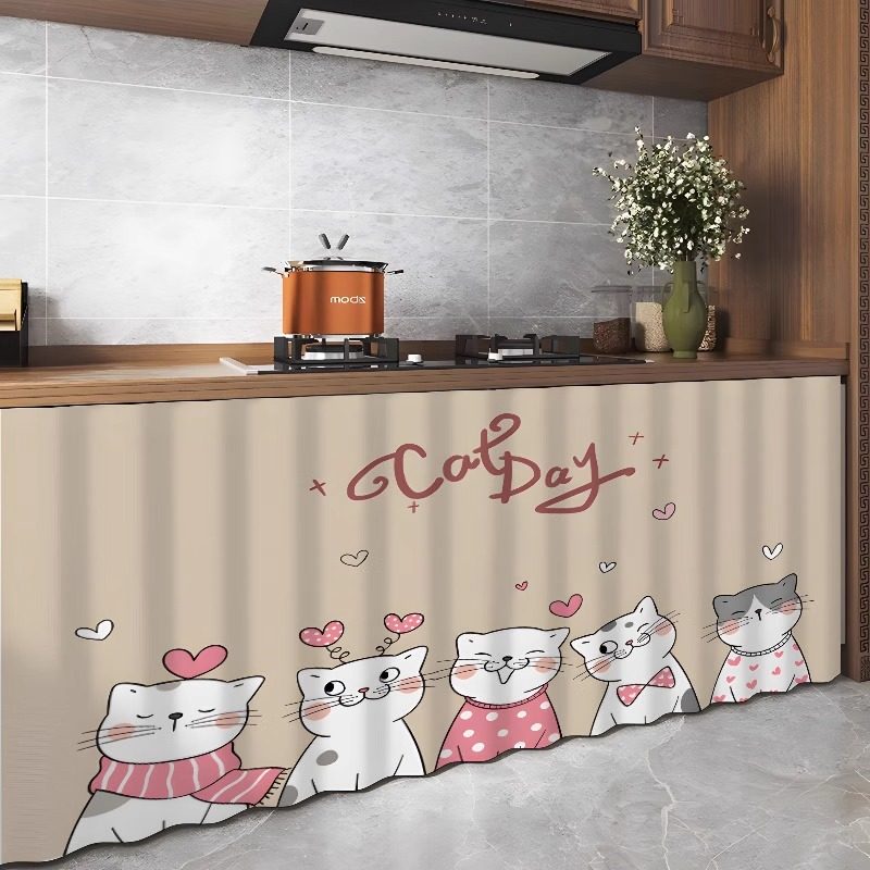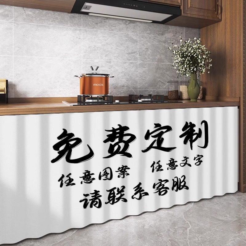 厨房柜子遮挡帘布橱柜置物架杂物遮丑柜门防尘帘子魔术贴滑轨拉帘