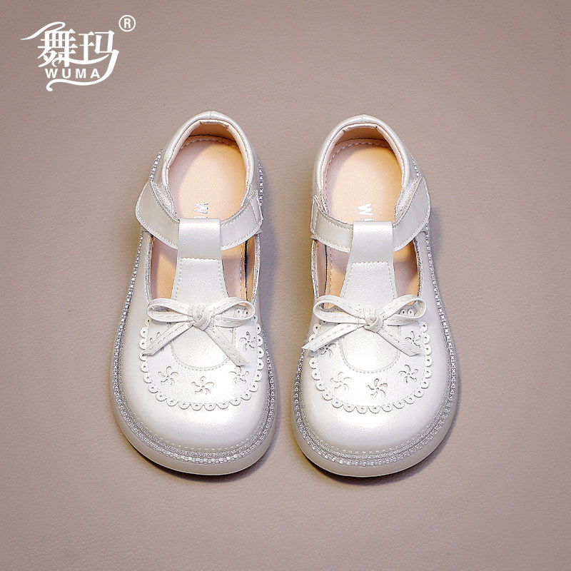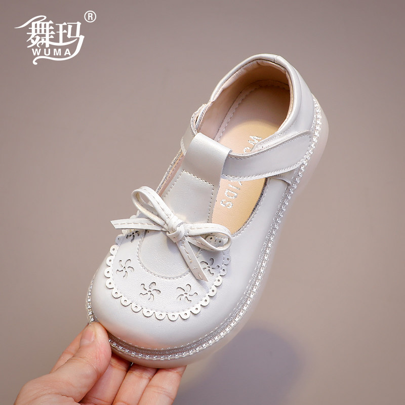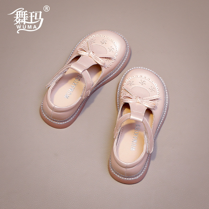 舞玛女童鞋子儿童公主鞋2026新款春秋季小女孩单鞋软底魔术贴皮鞋