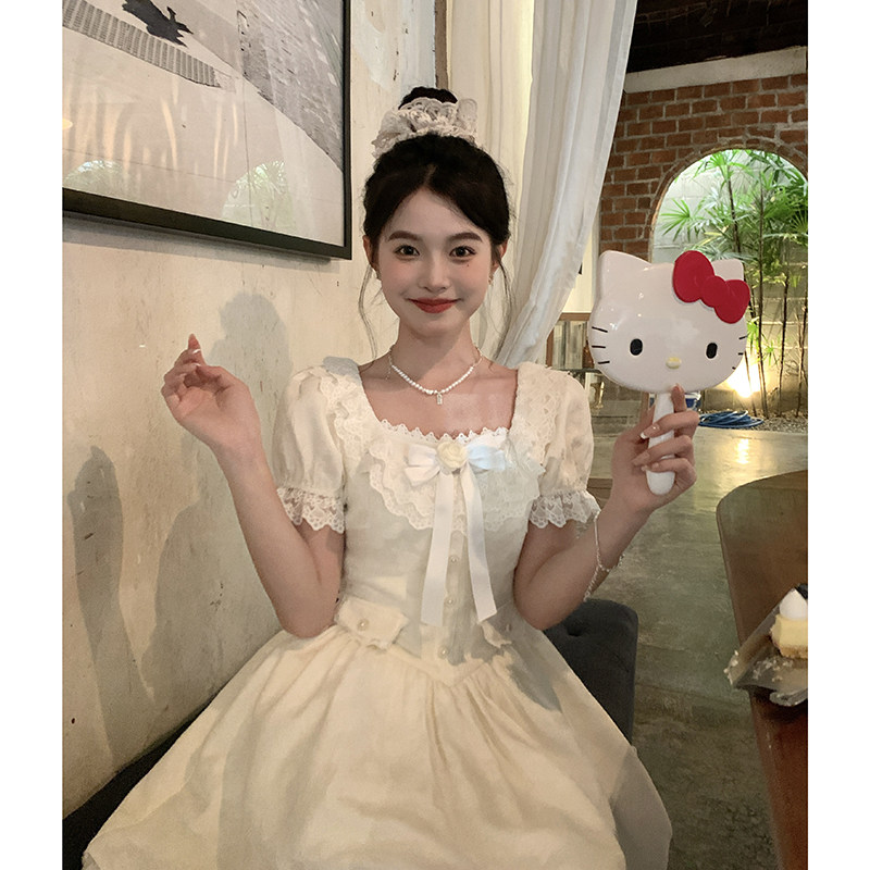 东京岁时记jk白色公主裙学院风夏日蕾丝泡泡袖法式连衣裙女小个子