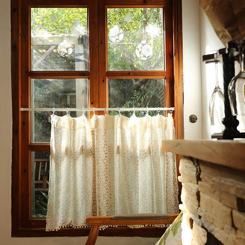 鸢尾乡旅蕾丝窗纱帘半帘美式门帘绣花穿杆帘柜帘防尘咖啡帘半遮光