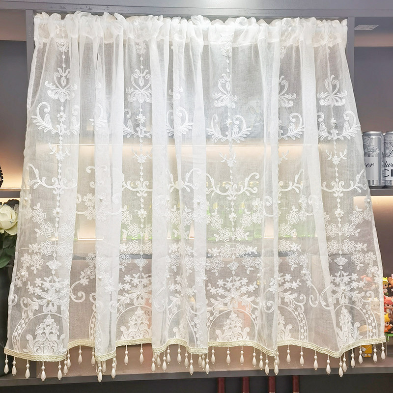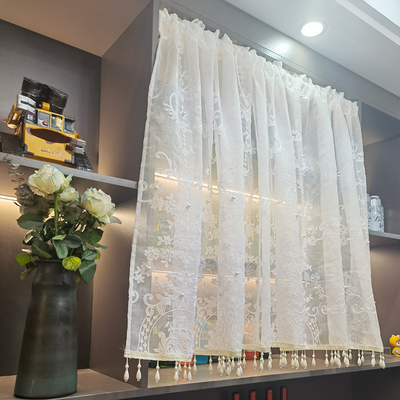 防尘帘白色蕾丝遮挡帘纱帘半帘遮丑穿杆免打孔厨房橱柜装饰帘挡灰