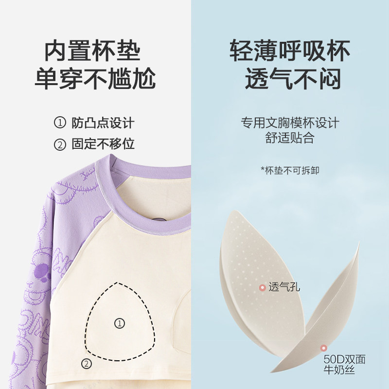 浪莎睡裙女纯棉2026年新款春秋季女士长袖带胸垫防凸点孕妇连衣裙