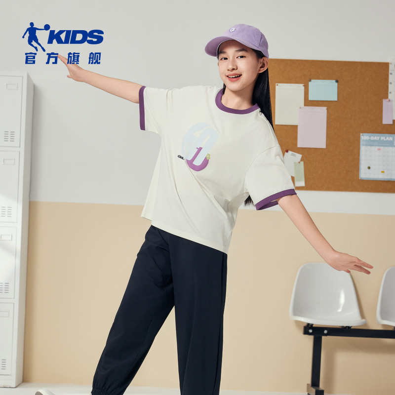 商场同款乔丹童装女童短袖2025夏季新款儿童大童圆领T恤女孩上衣