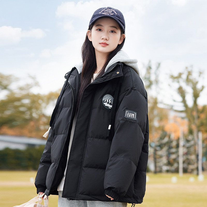 中学生羽绒服少女黑色高初中生90白鸭绒青少年大童学院风时尚外套