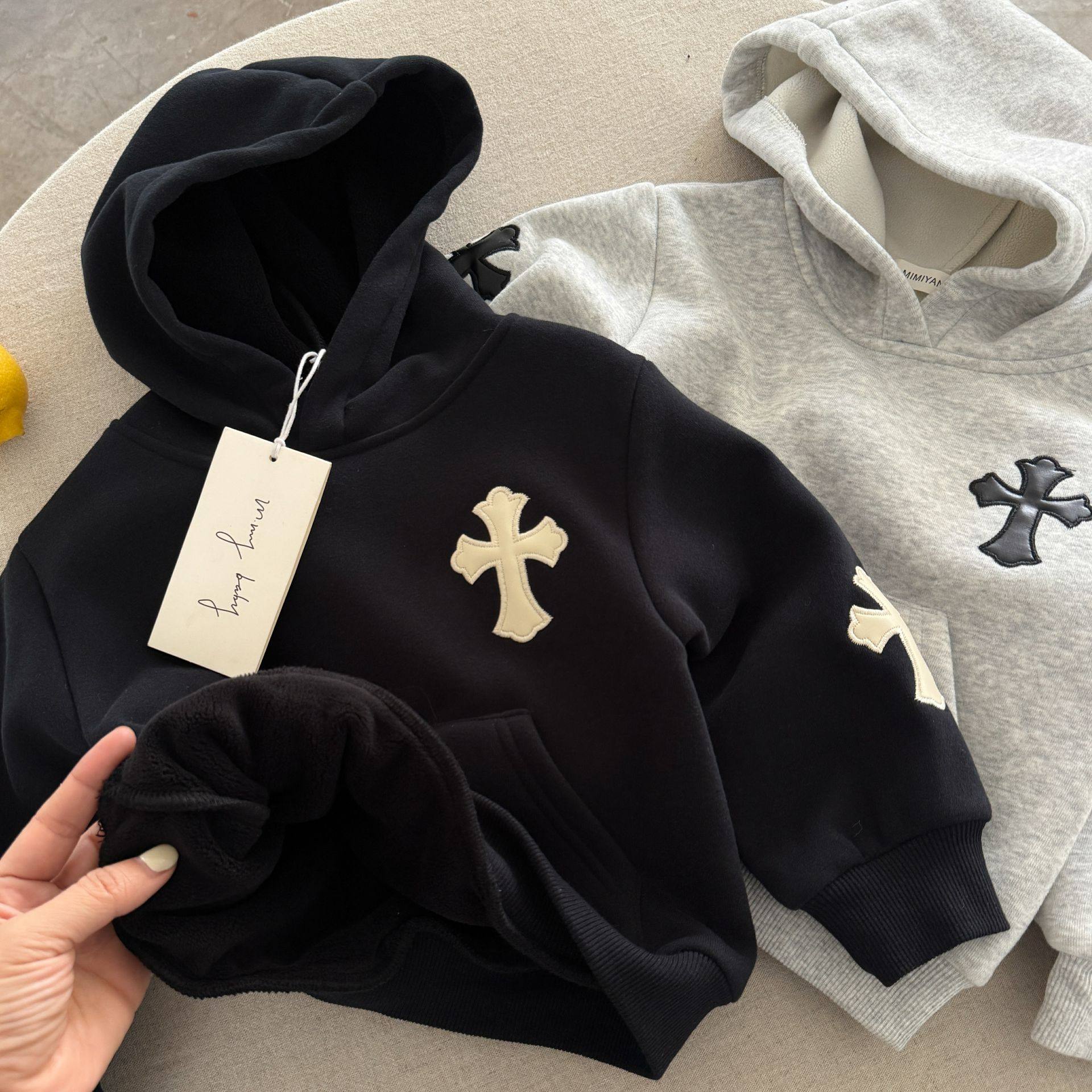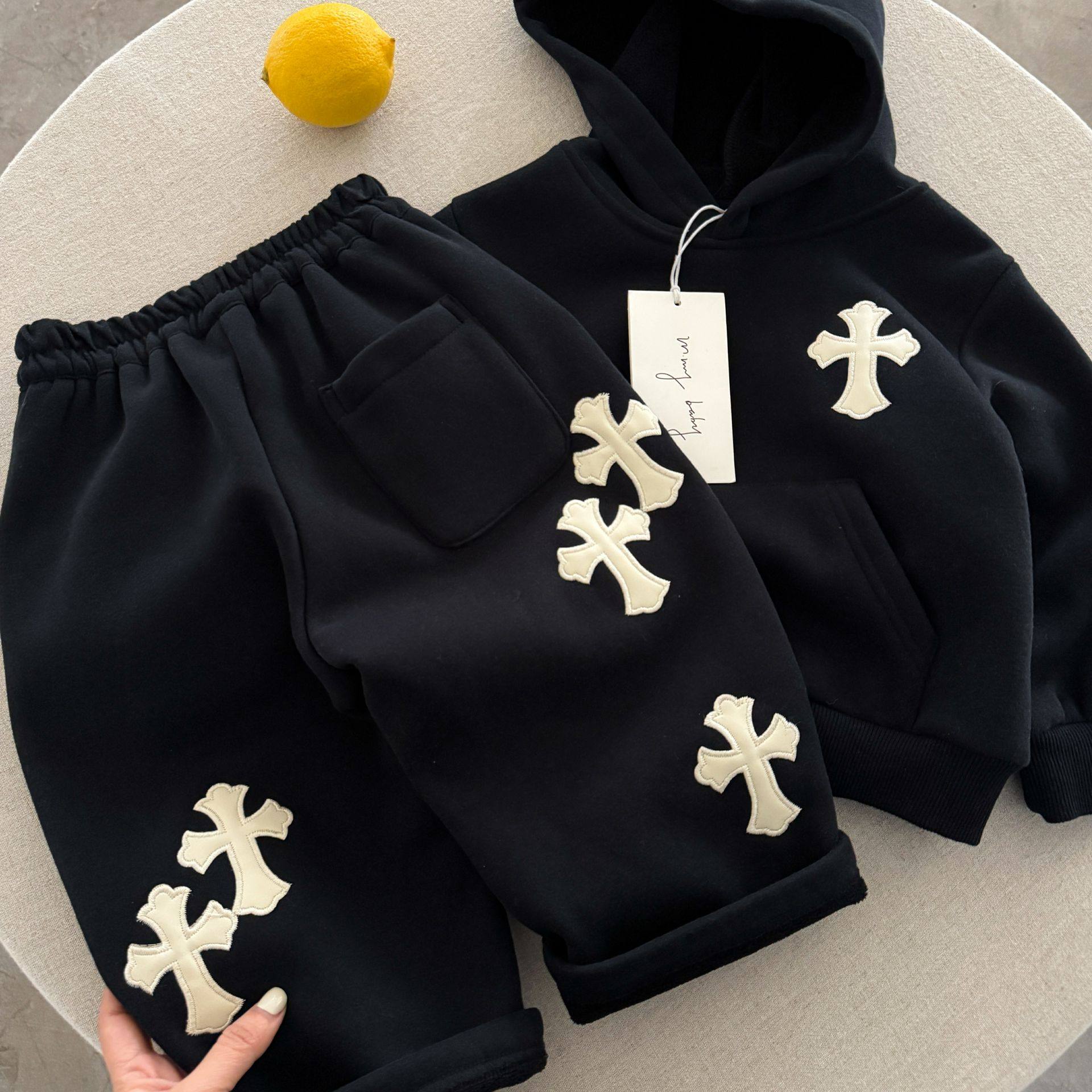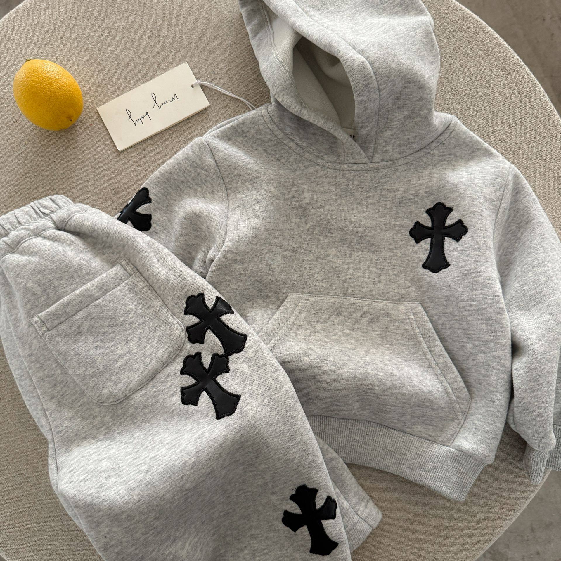 儿童冬款套装男女童加厚两件套2025新款宝宝连帽卫衣加绒长裤保暖