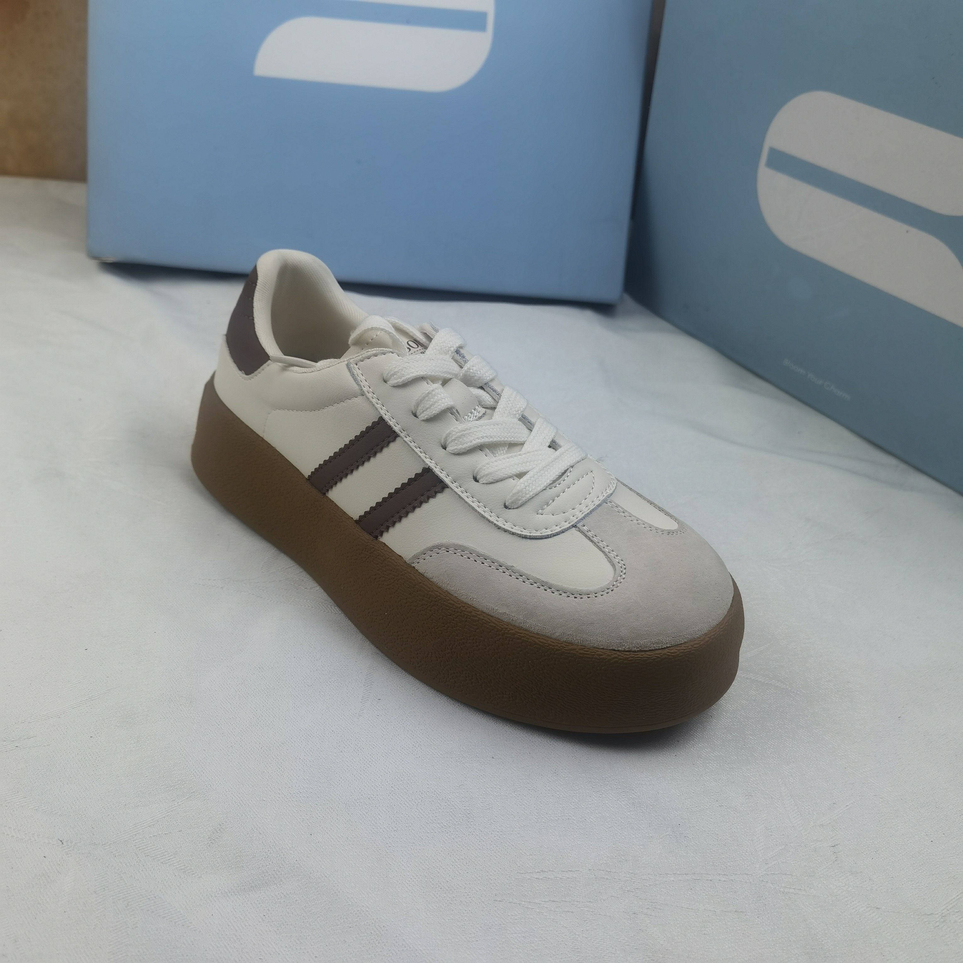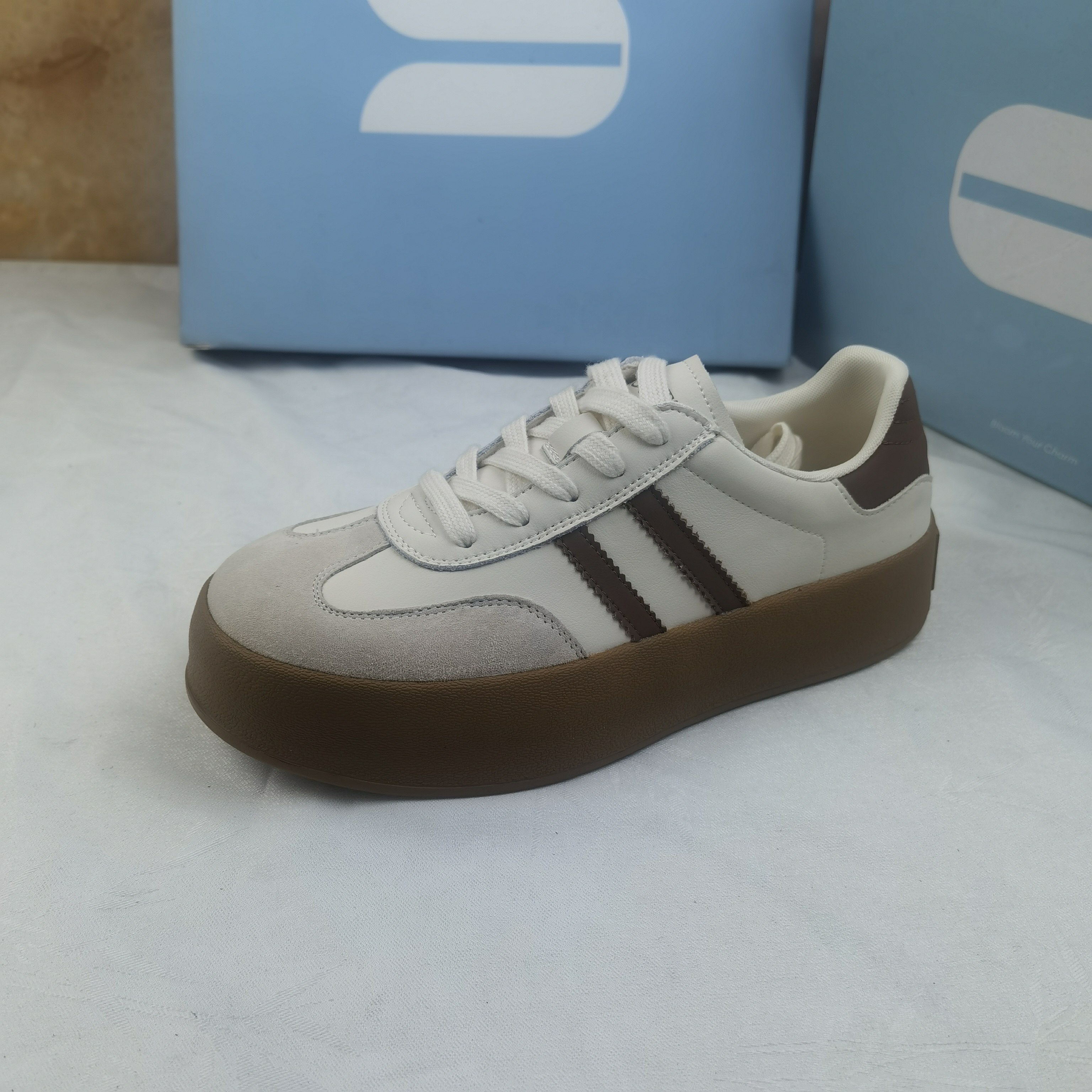 品牌正品商场同款新款女鞋休闲鞋德训鞋女鞋平底2C076米色咖色40