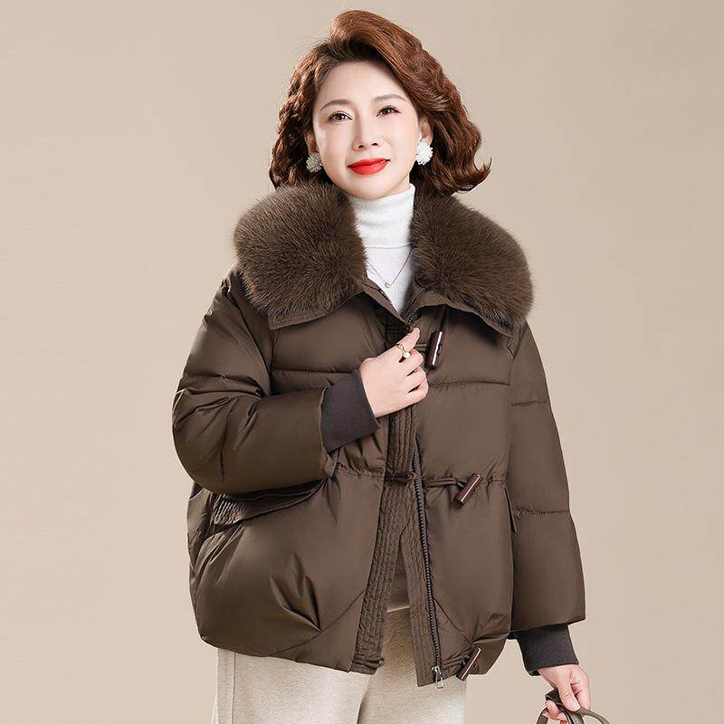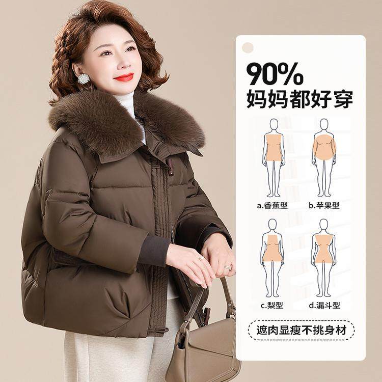 年轻妈妈羽绒棉服时尚洋气2025新款中年女士冬装保暖毛领棉袄外套