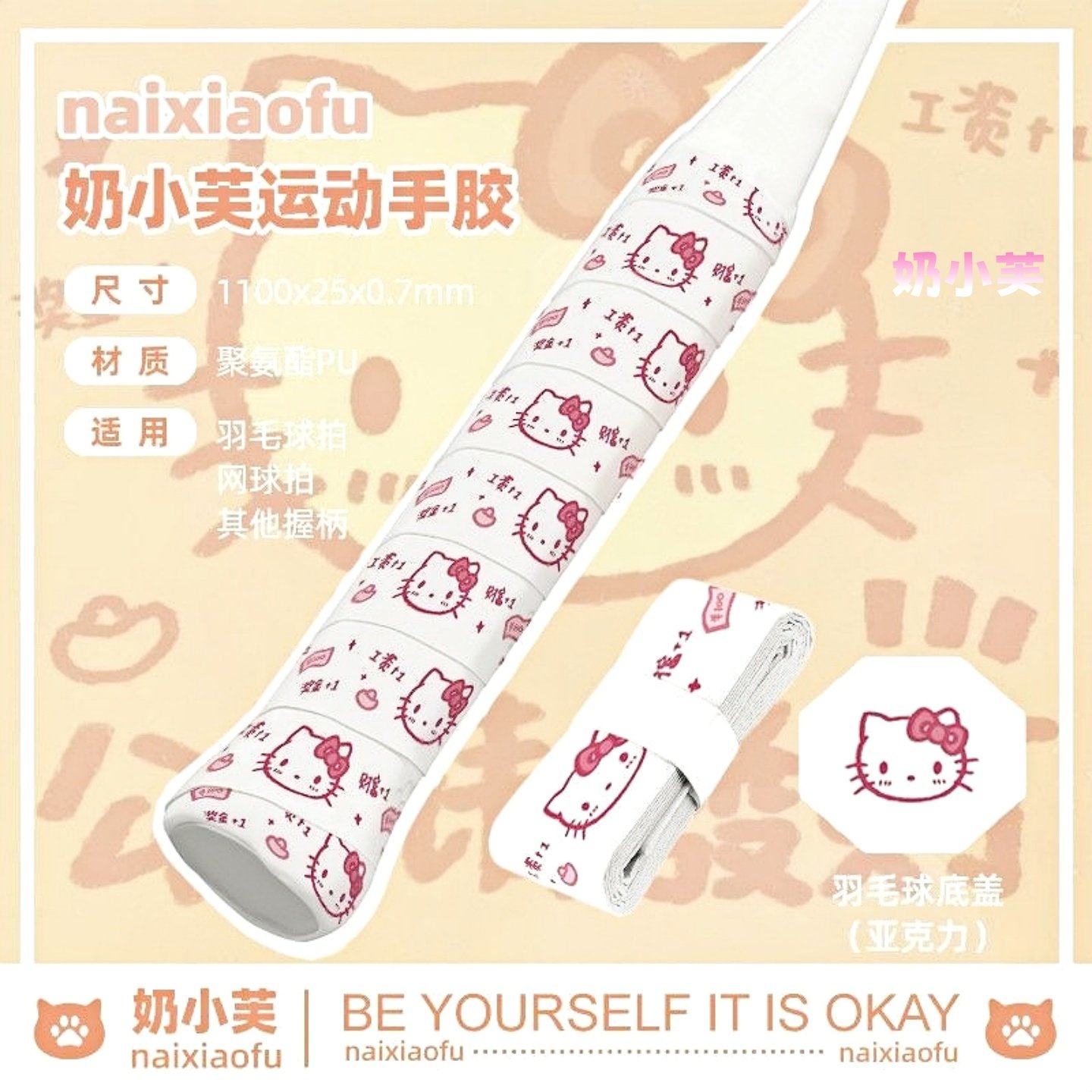 手胶羽毛球拍凯蒂猫可爱卡通印花 专业防滑吸汗 网球高颜值缠绕带
