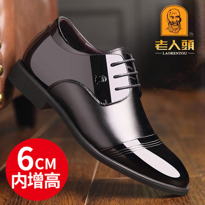 老人头内增高男鞋6cm真皮男士隐形增高皮鞋男商务正装结婚新郎鞋