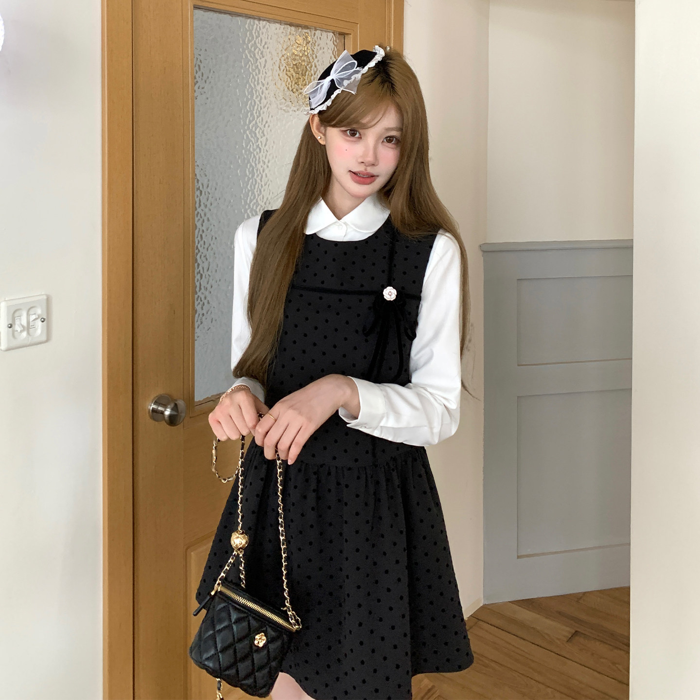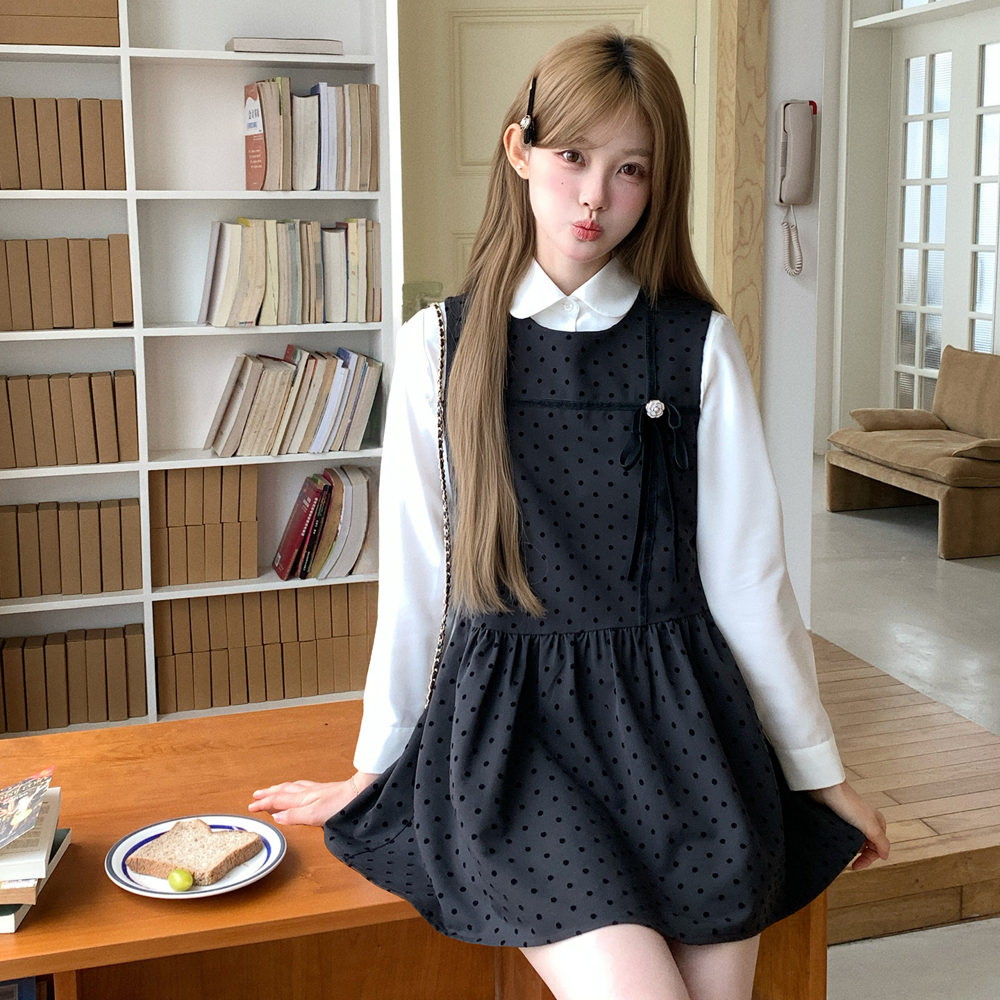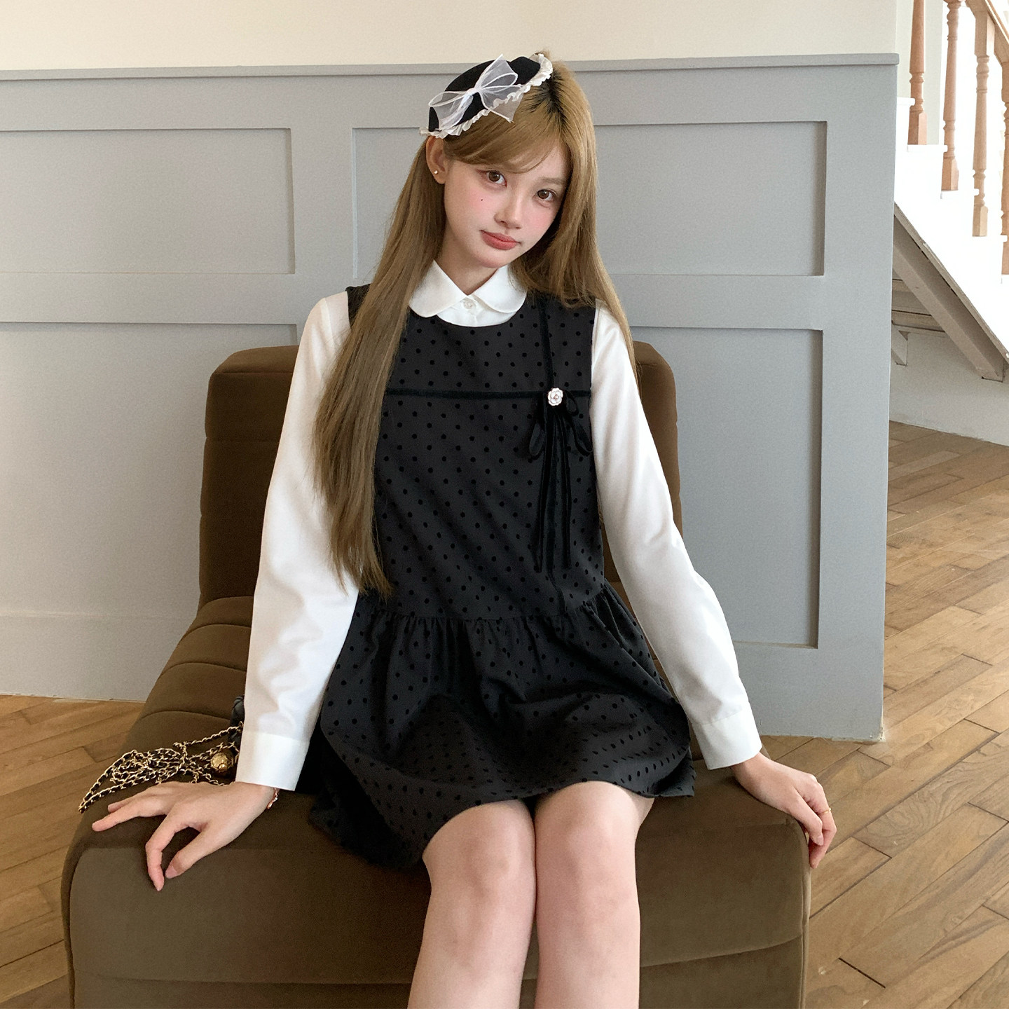 东京岁时记jk秋季新款灰色波点连衣裙白色长袖衬衫上衣学院风套装