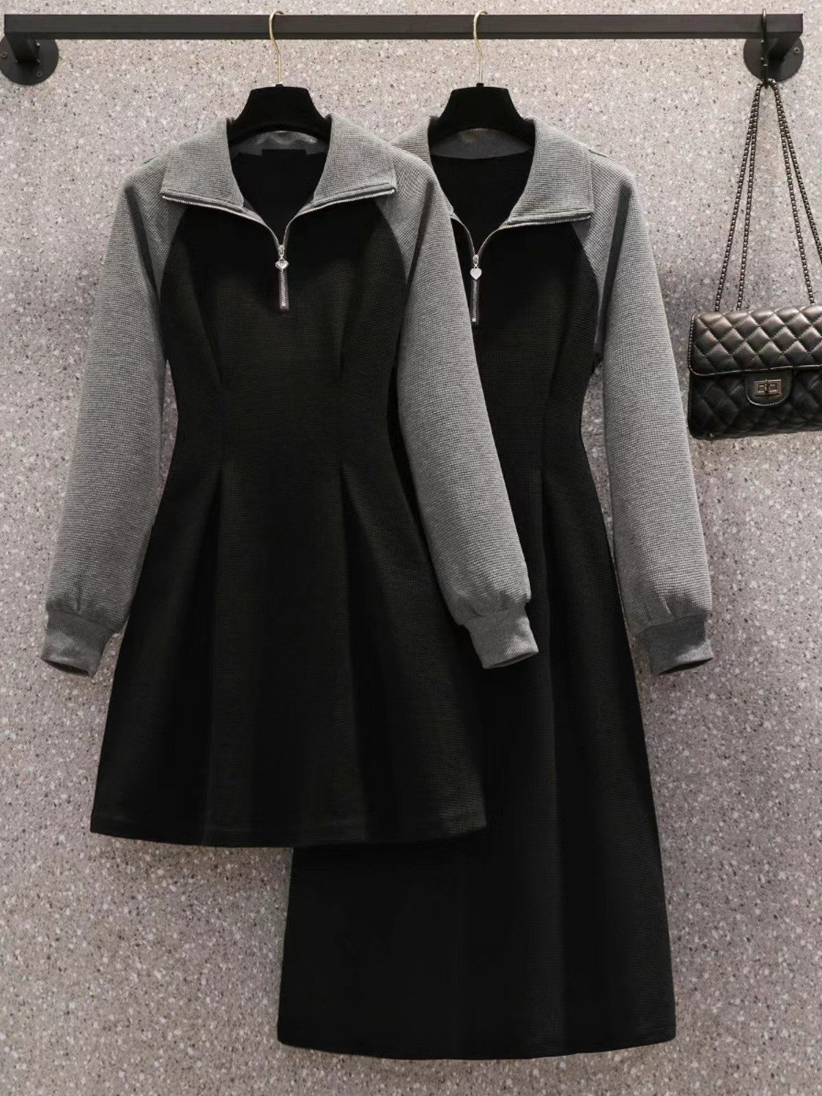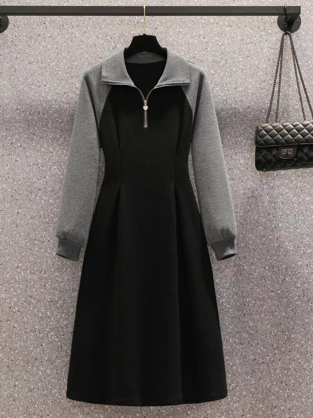 秋冬大码女装2025年新款拼色polo领胖妹妹设计感小众长短款连衣裙
