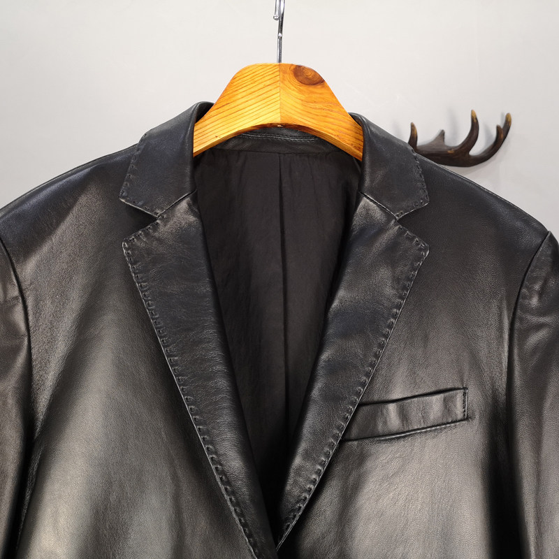 海宁2026春季新款真皮皮衣男绵羊皮夹克外套西装领商务休闲皮衣