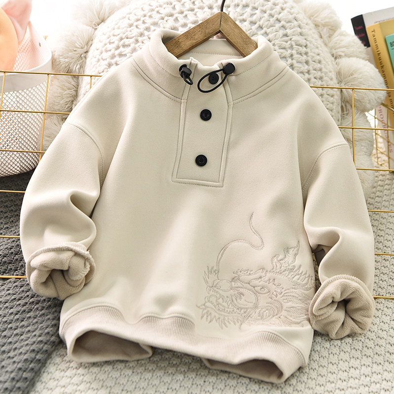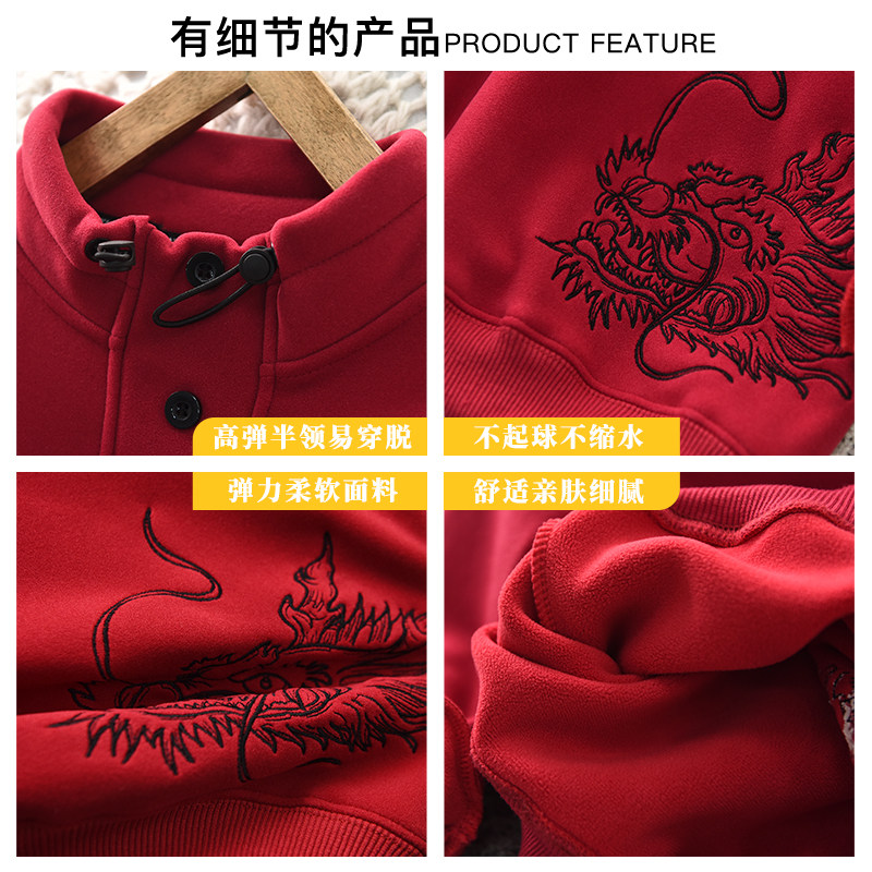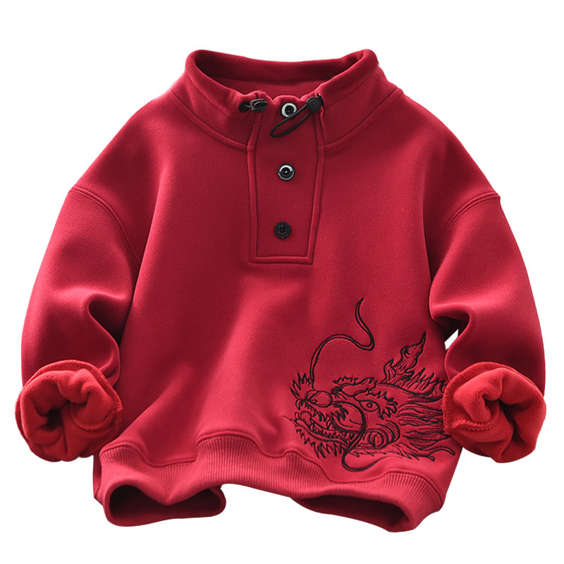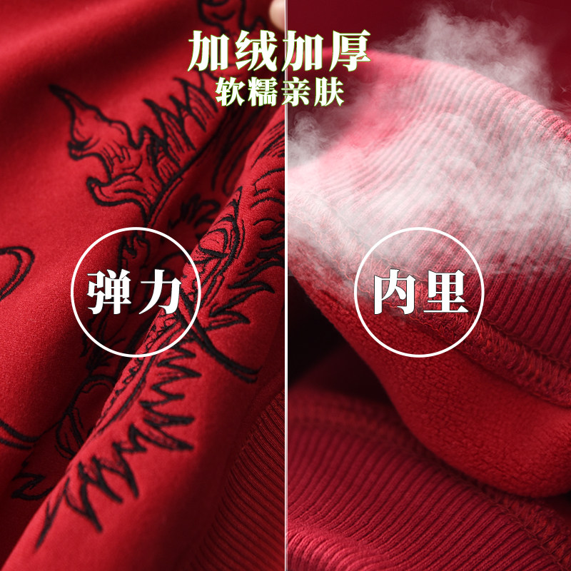 男童新年拜年服红色马年本命年卫衣2025冬洋气中大童加绒加厚上衣