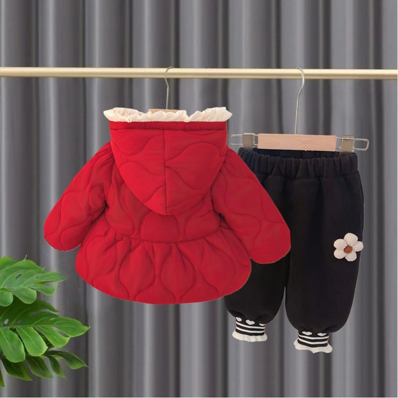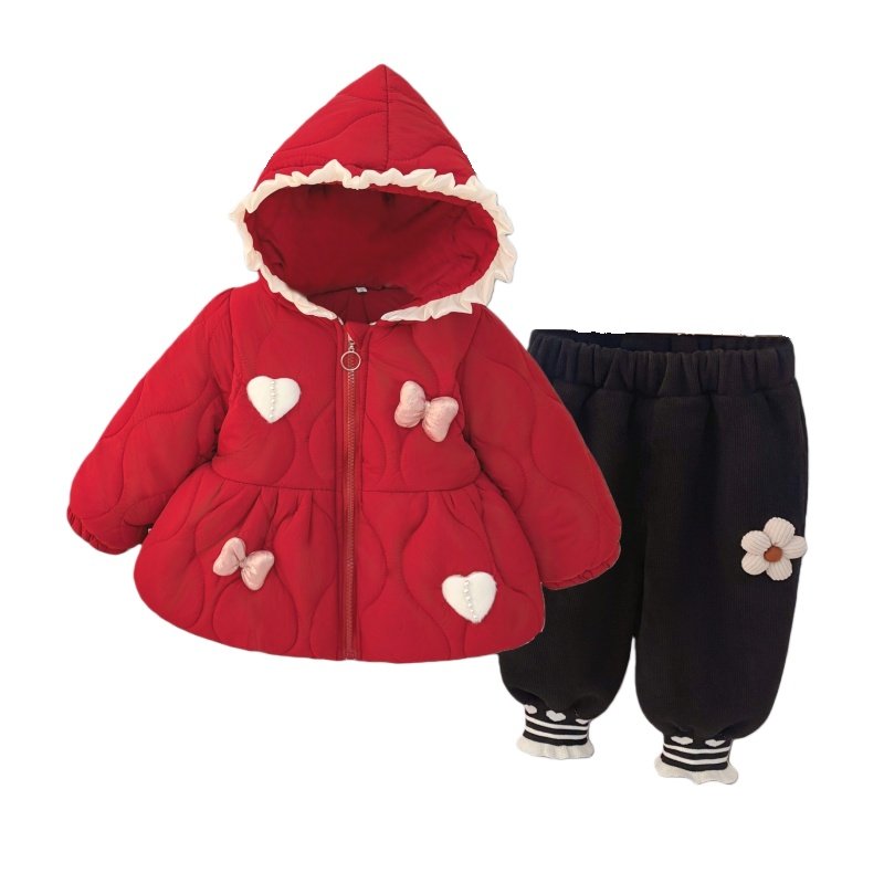 女童加绒套装秋冬2026新款洋气女宝宝时髦衣服儿童冬装棉服两件套