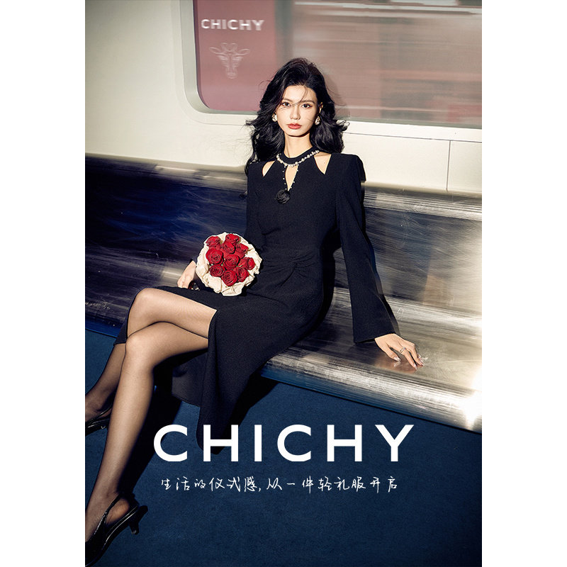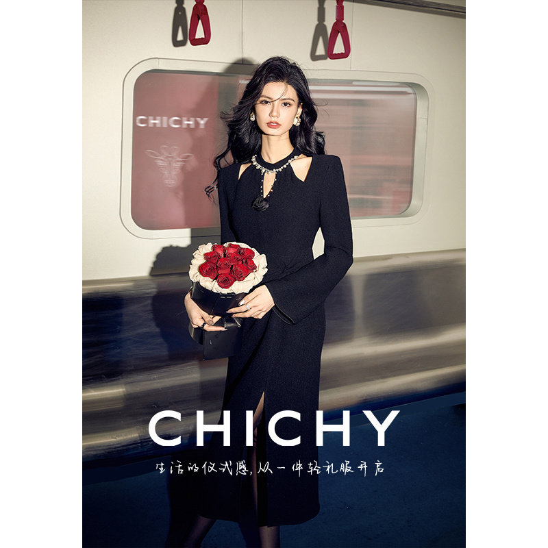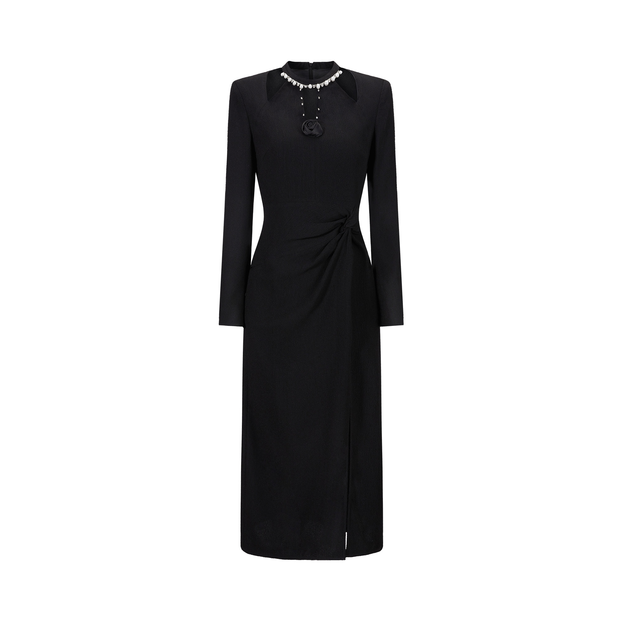 311线报网描述:黑色系长袖连衣裙 抽褶开衩设计独特别致