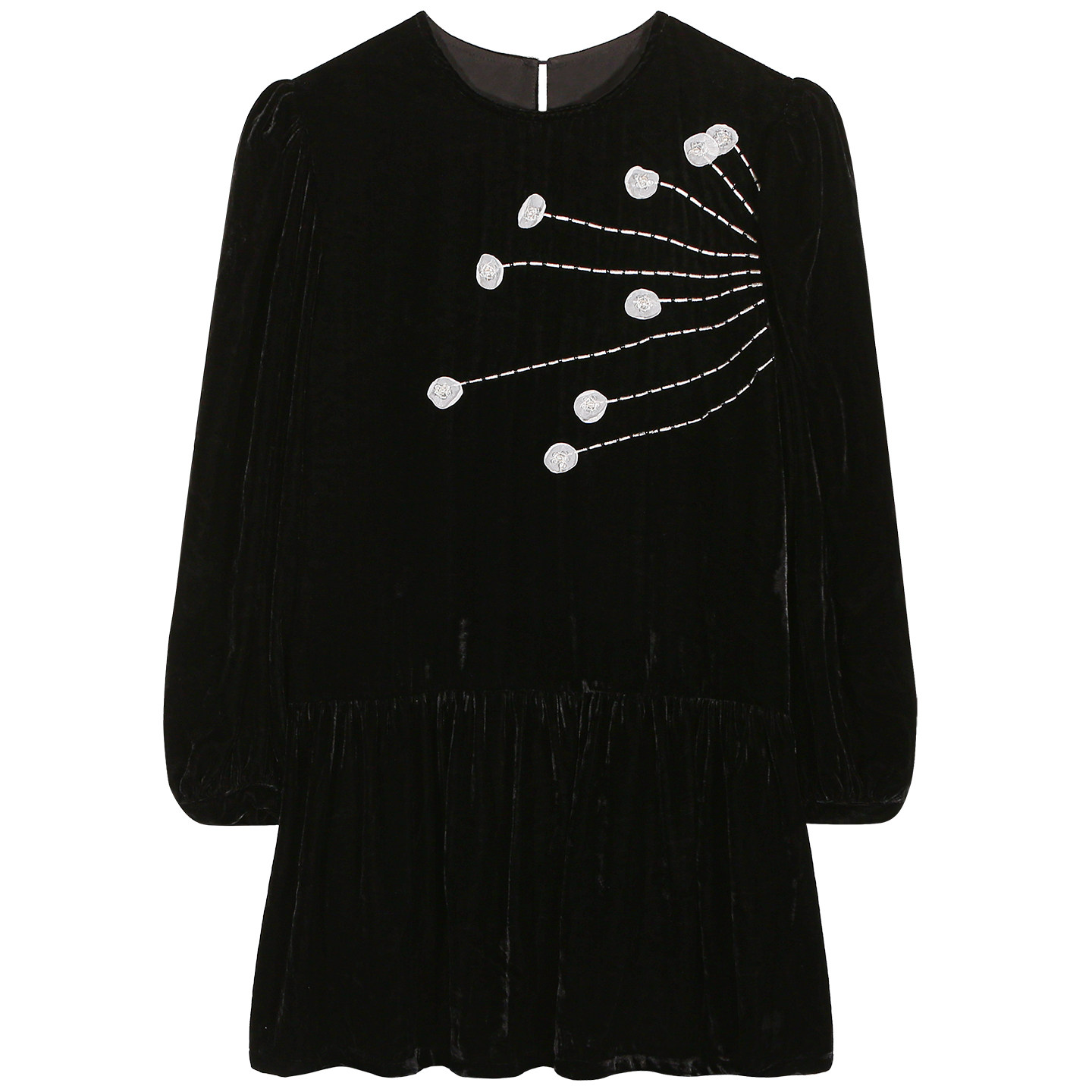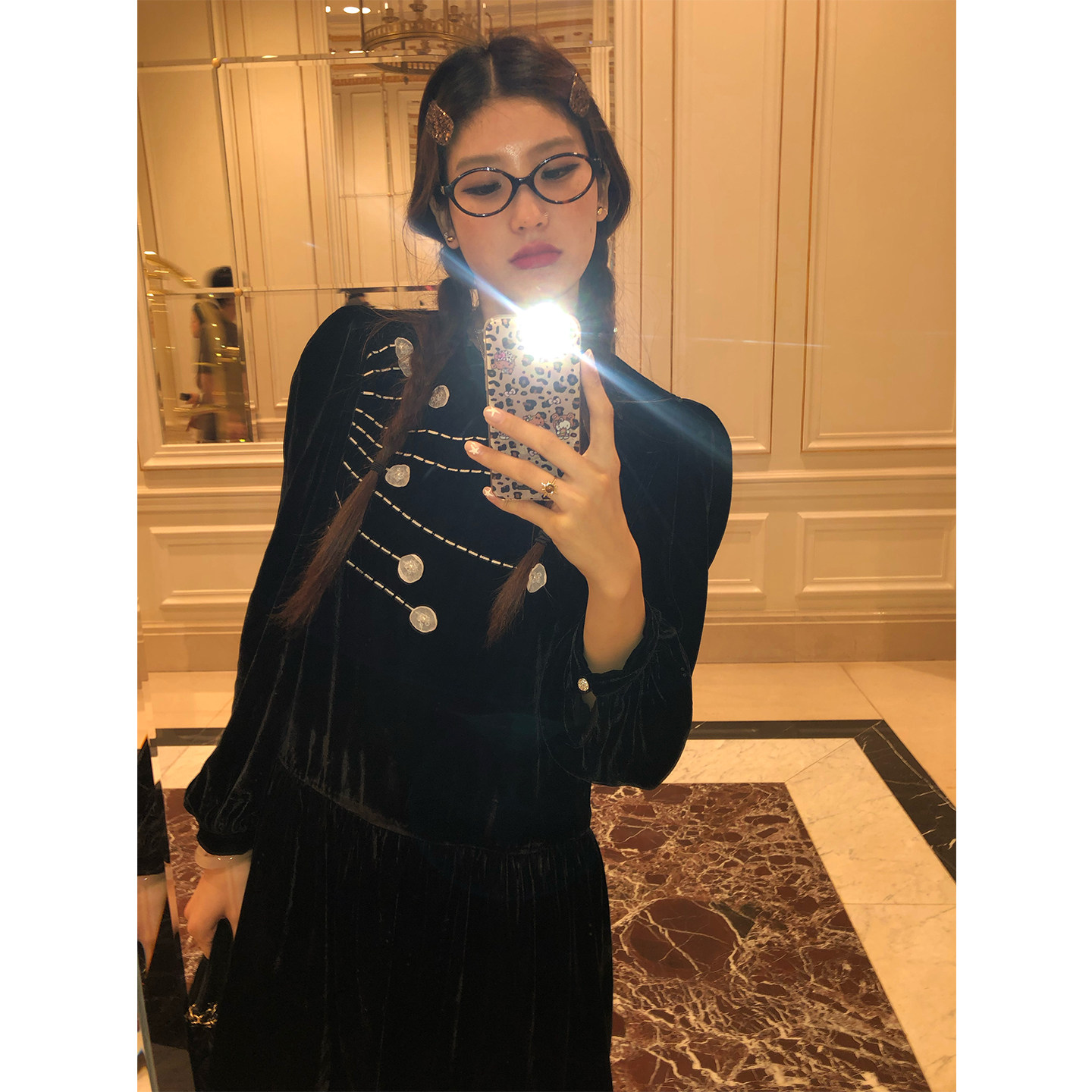 落落狷介黑色长袖连衣裙女2025年新款设计感小众复古风泡泡袖裙子