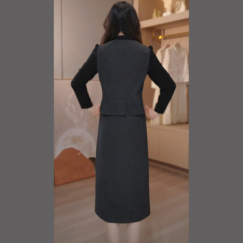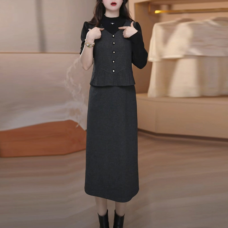 磨毛精纺气质轻奢女装2026春秋新款高级感假两件长袖内搭连衣裙子
