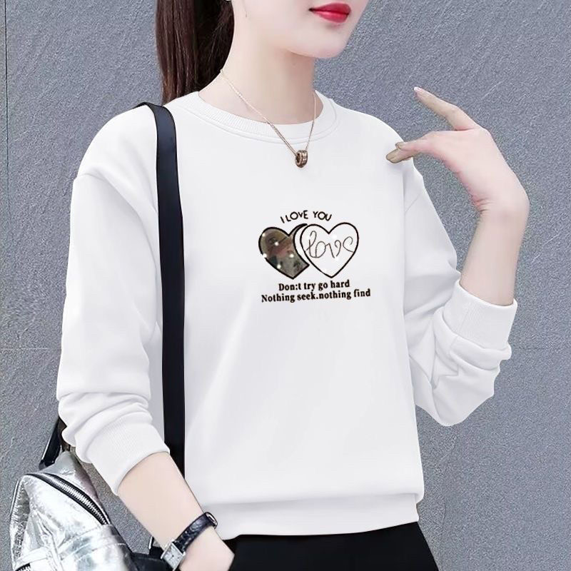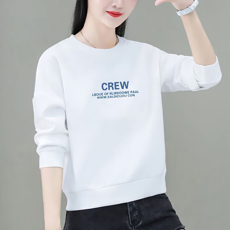 2026新款纯棉圆领长袖卫衣女款秋装宽松大码洋气减龄上衣服打底衫