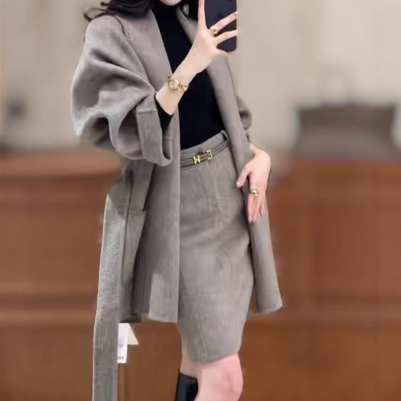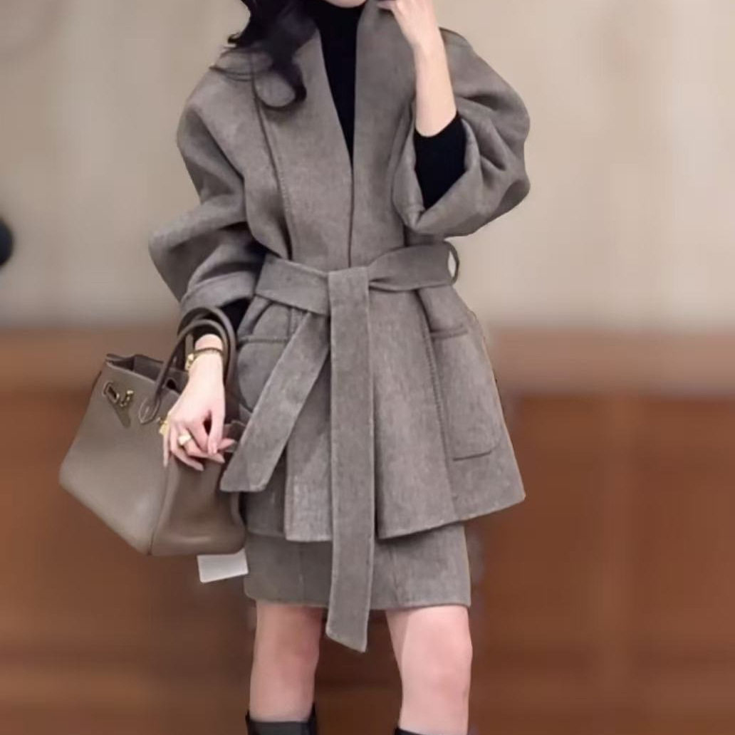 2026年早春网红新款时尚高级感气质系带中长款外套+半身裙套装女