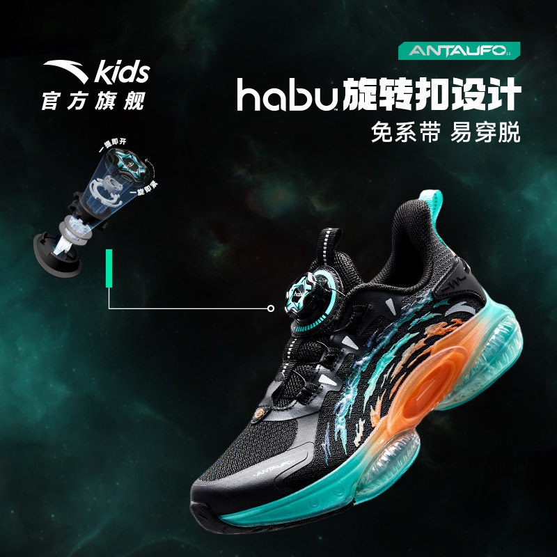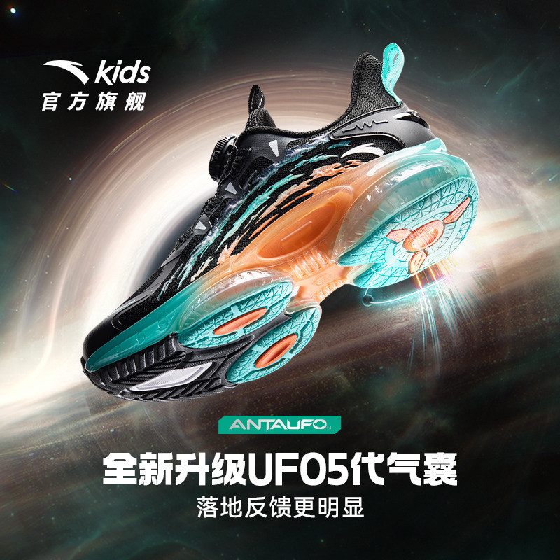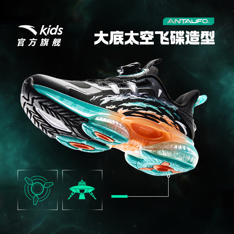 安踏儿童运动鞋UFO旋钮扣跑鞋夏季新款男大童跑步鞋透气男童鞋子