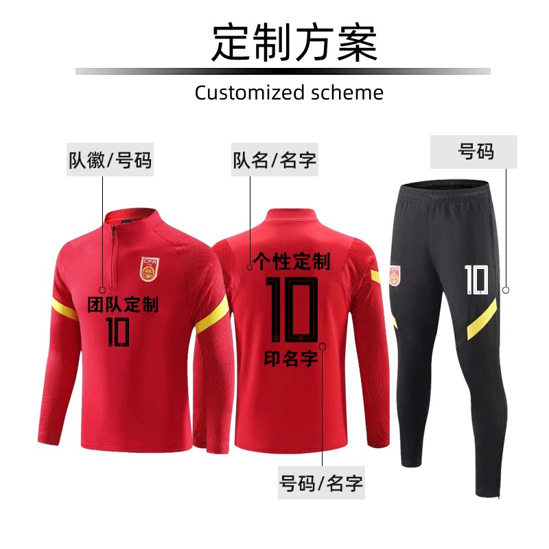 中国男女款足球队训练服长袖运动队服套装秋冬季保暖球衣出场定制
