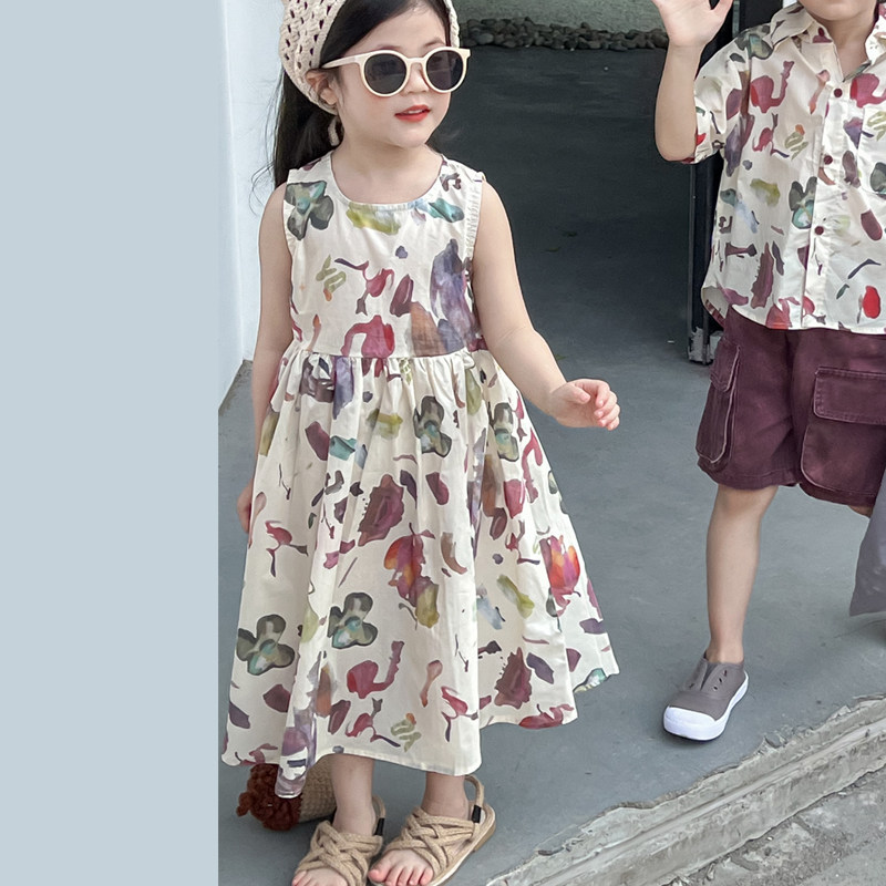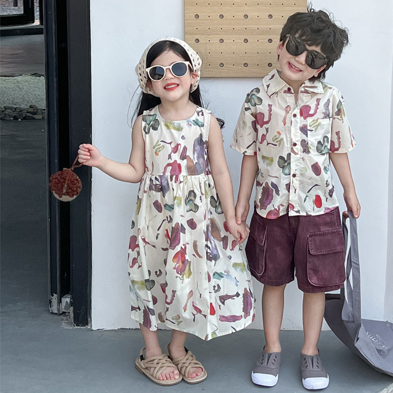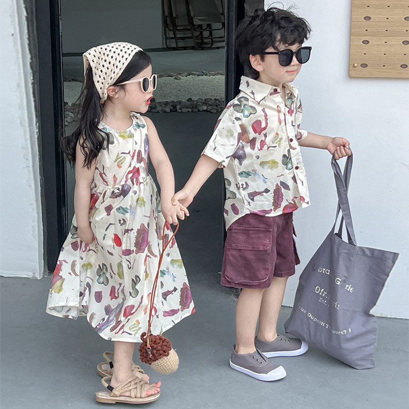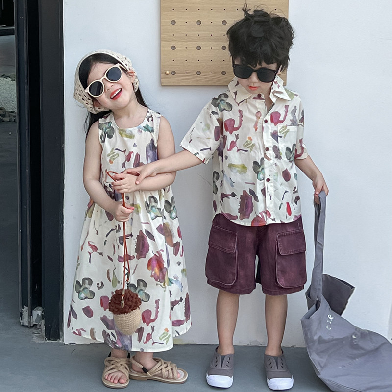 【断码清仓】女童兄妹装海边度假风碎花连衣裙夏季高级感2025新款
