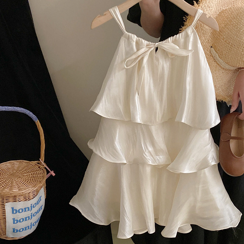 女童海边度假风吊带连衣裙高级感夏季2025新款儿童吊带裙白色洋气