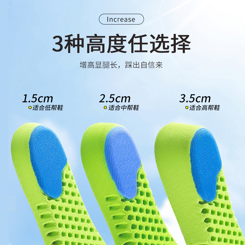 防臭增高鞋垫男士女隐形内增高鞋垫不累脚透气吸汗增高垫足弓支撑