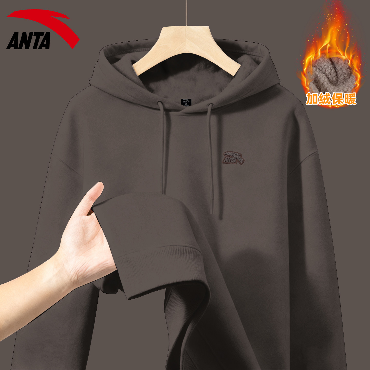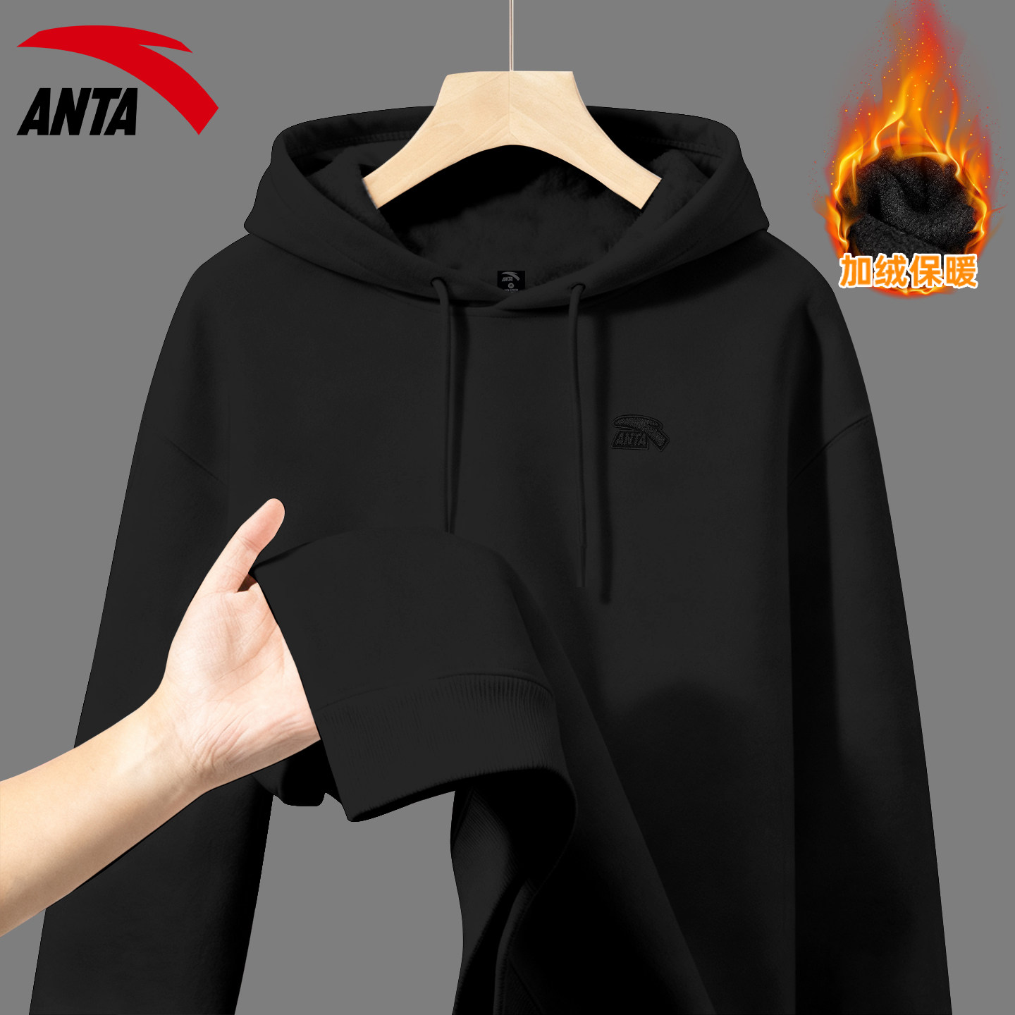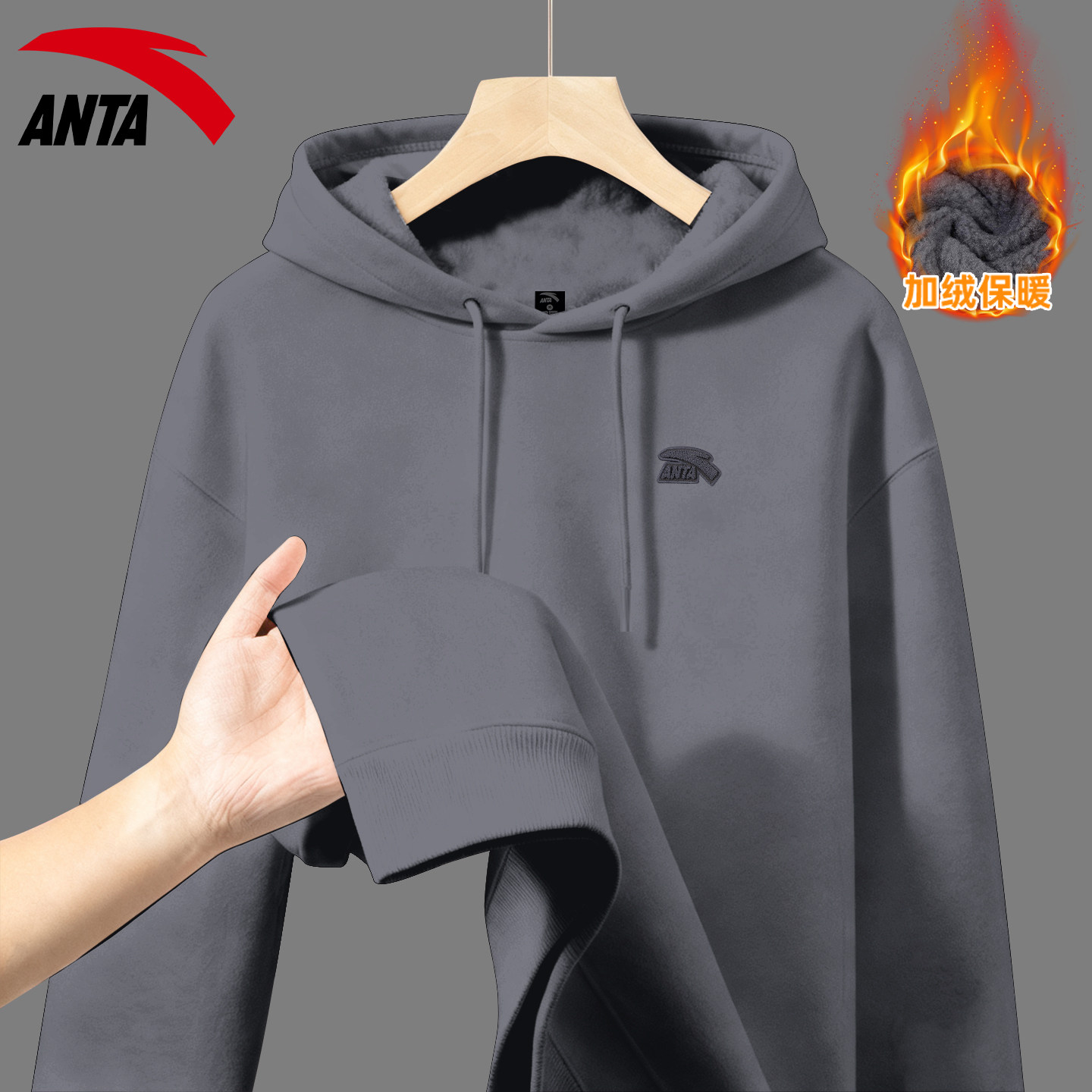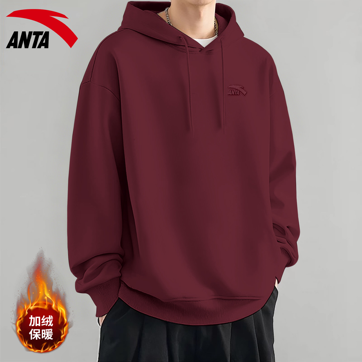 安踏连帽卫衣男红色新年加绒外套青少年宽松百搭本命年套头红上衣