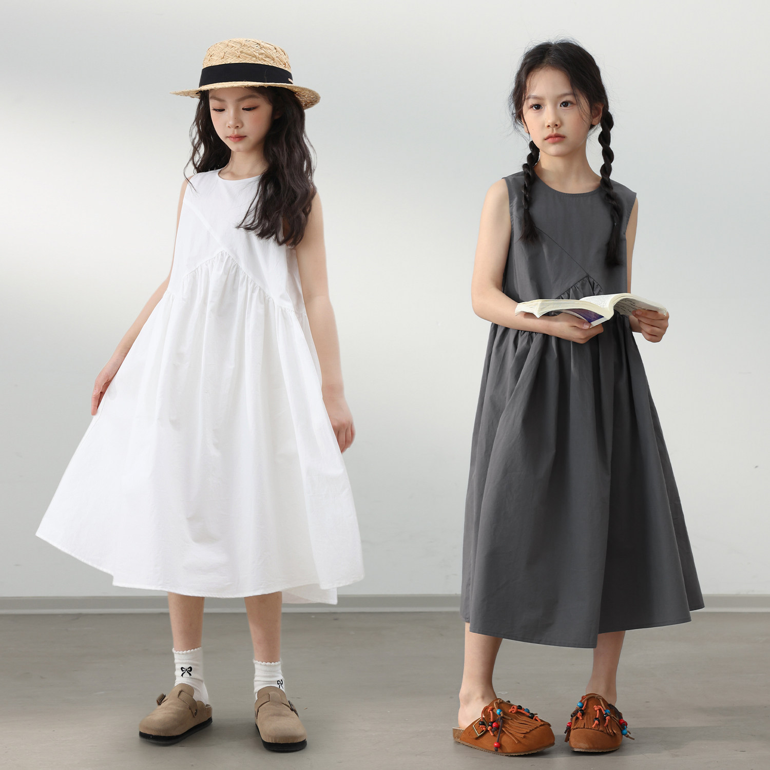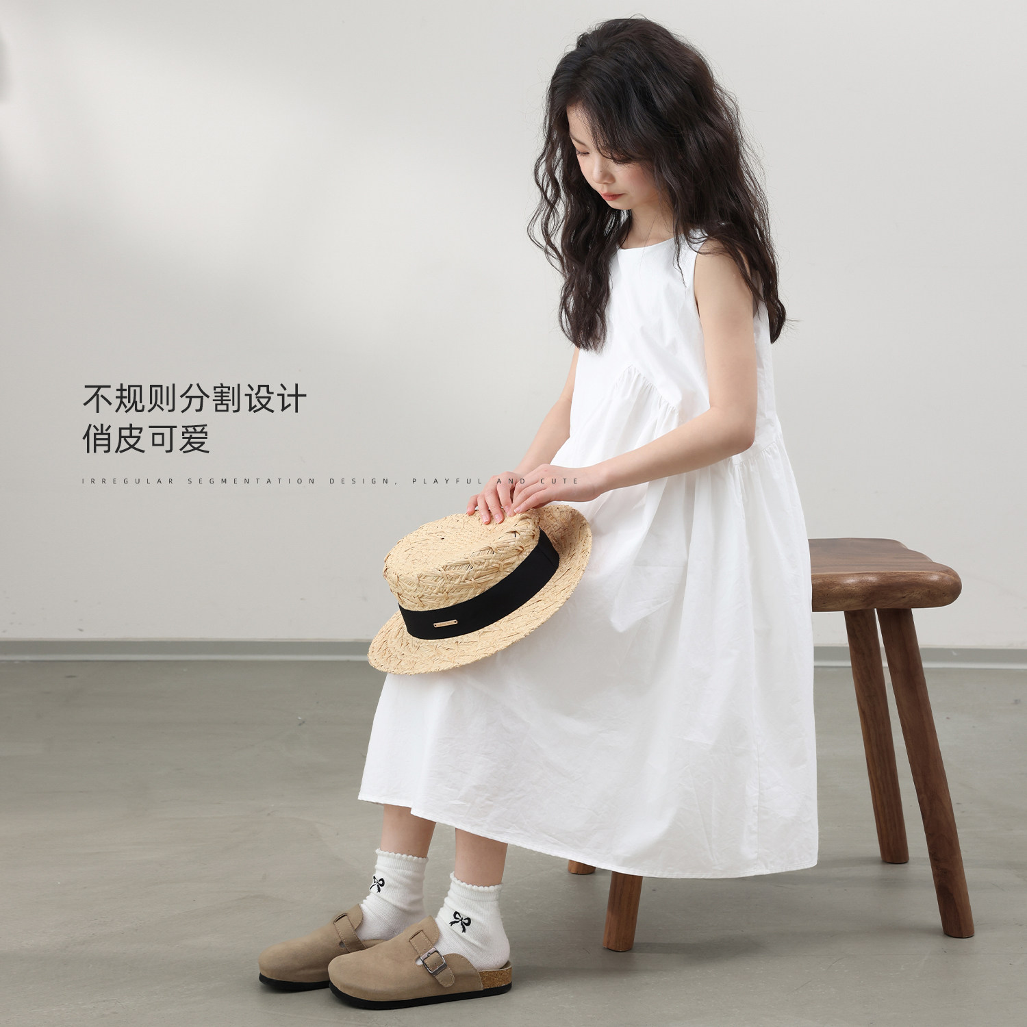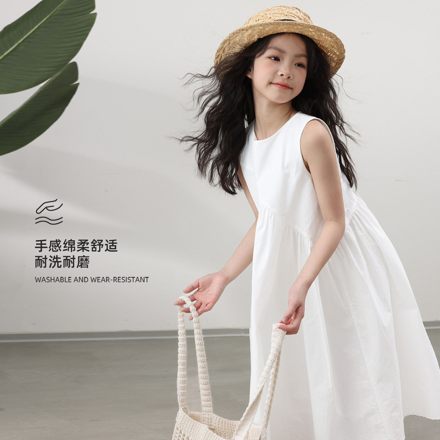 NORNOR童装 女童连衣裙夏季2025新款大童背心裙儿童白色裙子长款