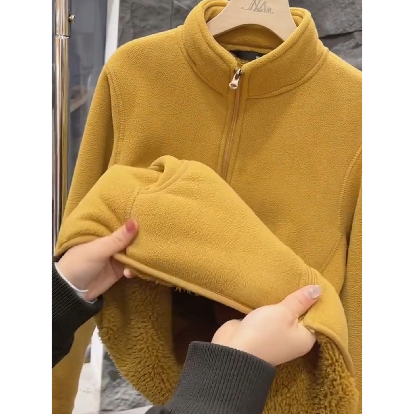 311线报网描述:金驼色摇粒绒外套男女冬季加绒加厚保暖卫衣