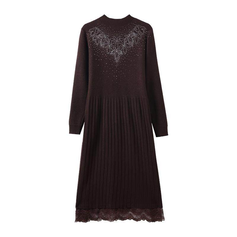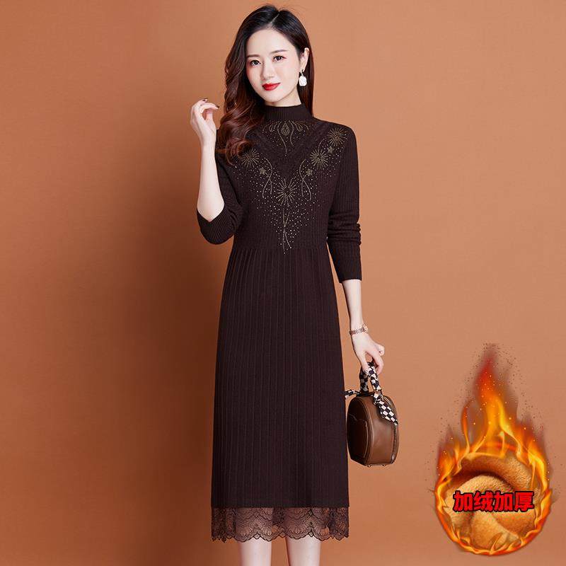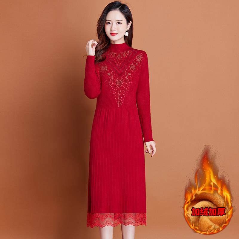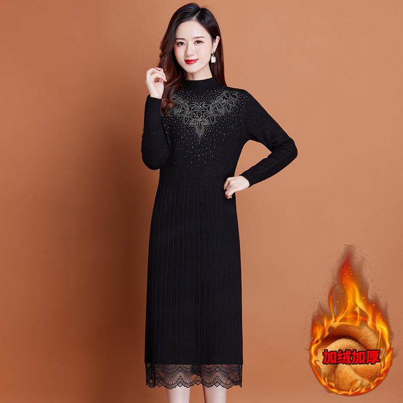冬季一体加绒加厚中长款羊绒毛衣连衣裙过膝配大衣针织弹力打底衫