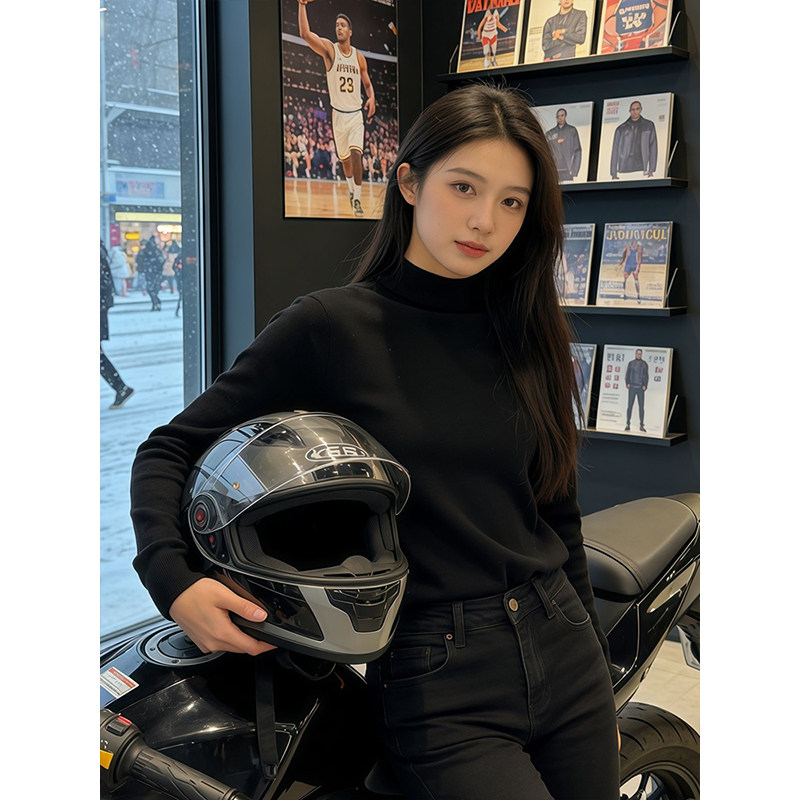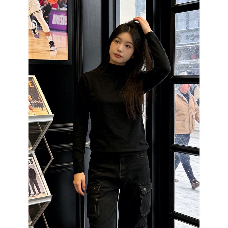 韩系纯黑色半高领毛衣男款冬季高级感痞帅内搭打底针织衫情侣线衣