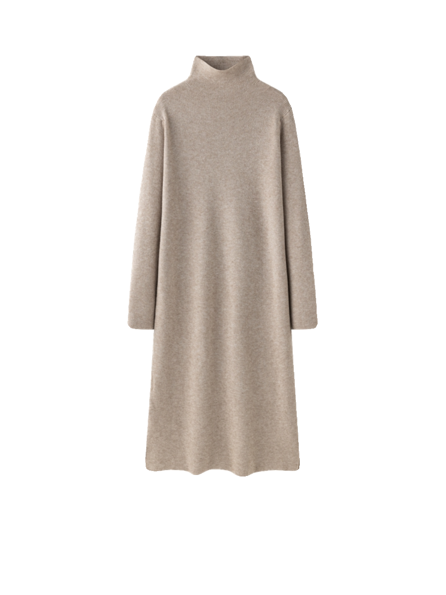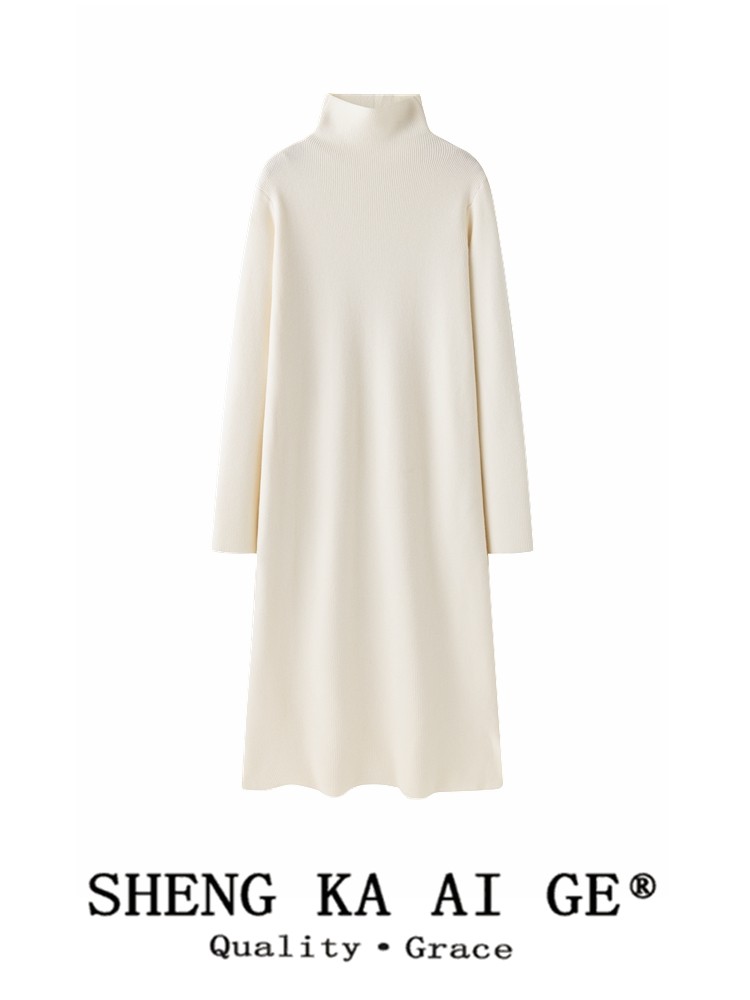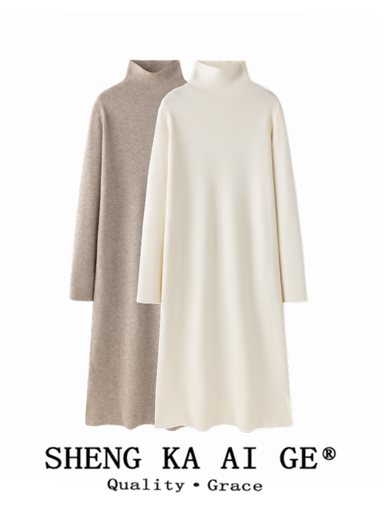 羊毛纯色针织长袖连衣裙女2025秋冬季中长款宽松内搭打底毛衣长裙