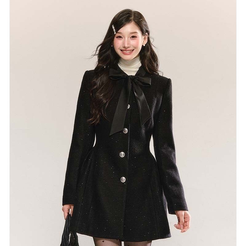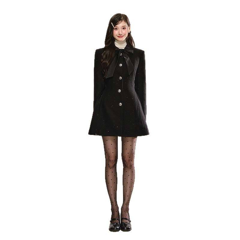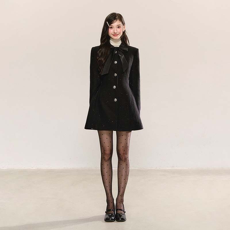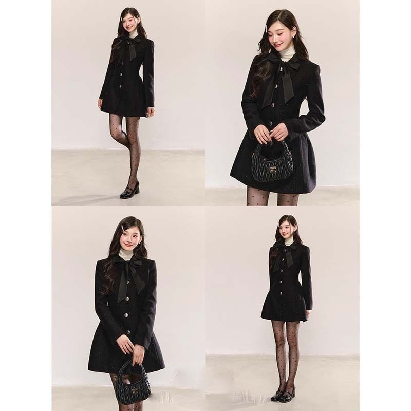 【有里布】蝴蝶结小香风连衣裙女外套版春秋高级感收腰显瘦小个子