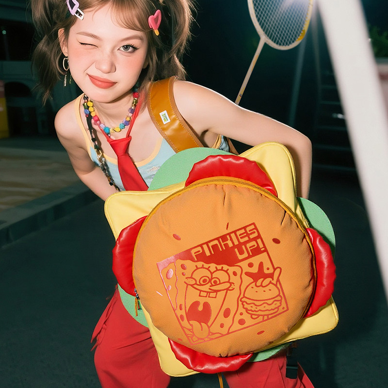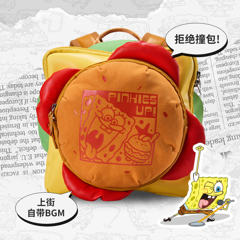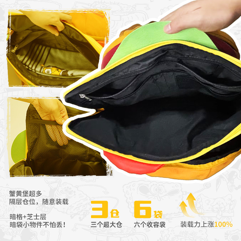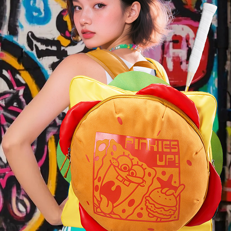 川崎海绵宝宝联名款授权羽毛球拍包汉堡包蟹黄堡多隔层收纳显眼包