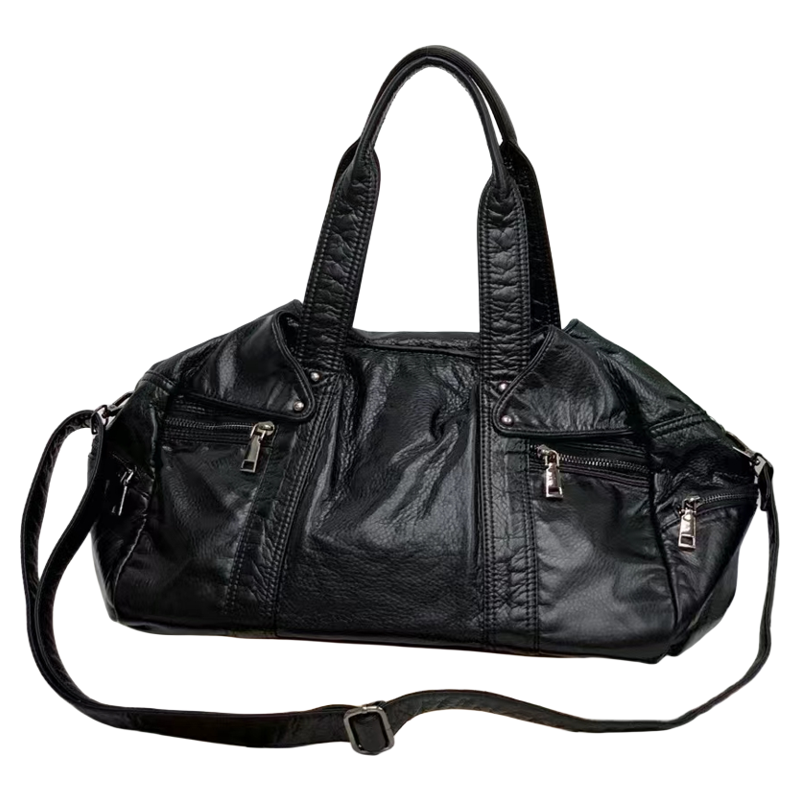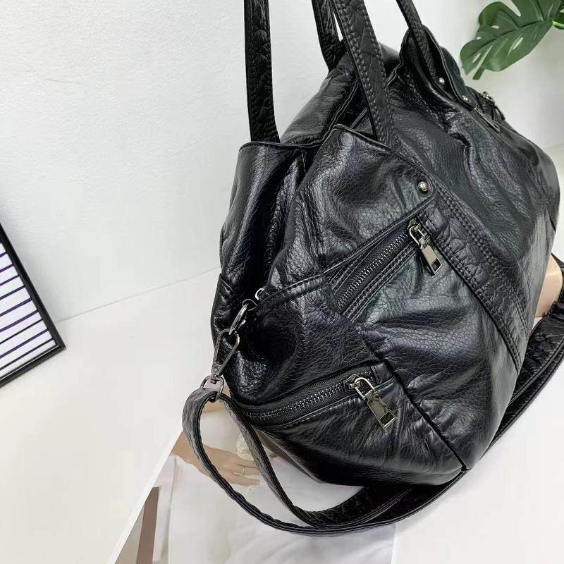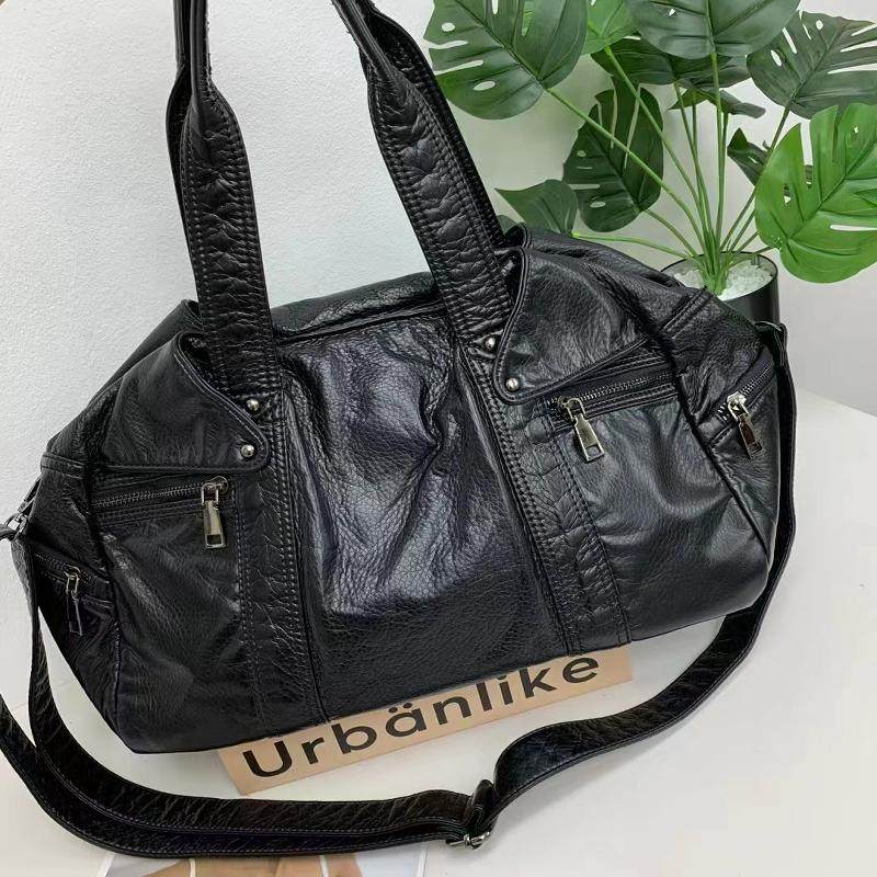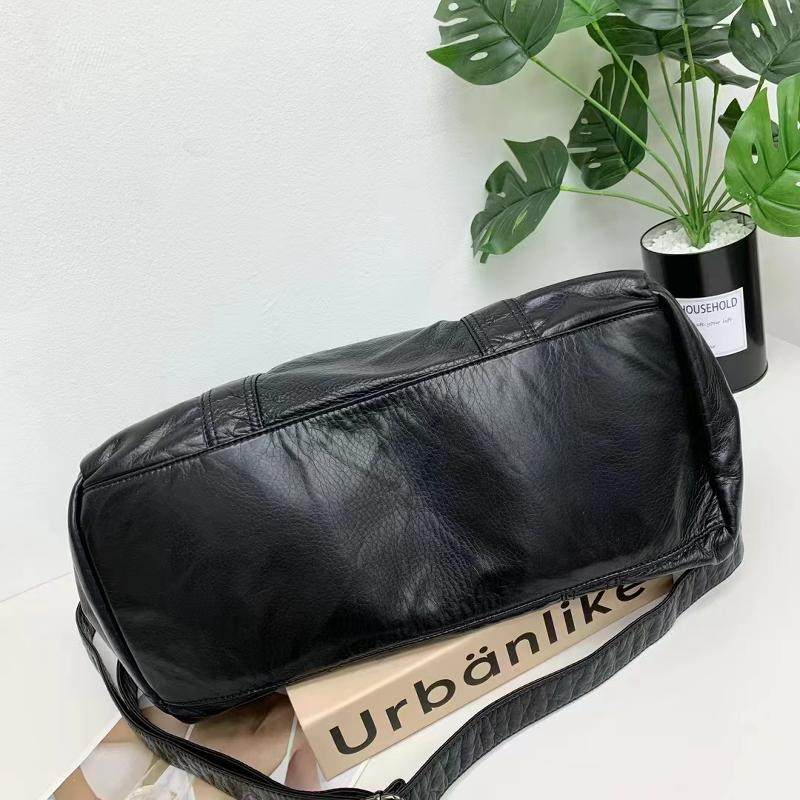 美式复古黑色包包女款大容量通勤百搭多隔层慵懒风托特单肩斜挎包