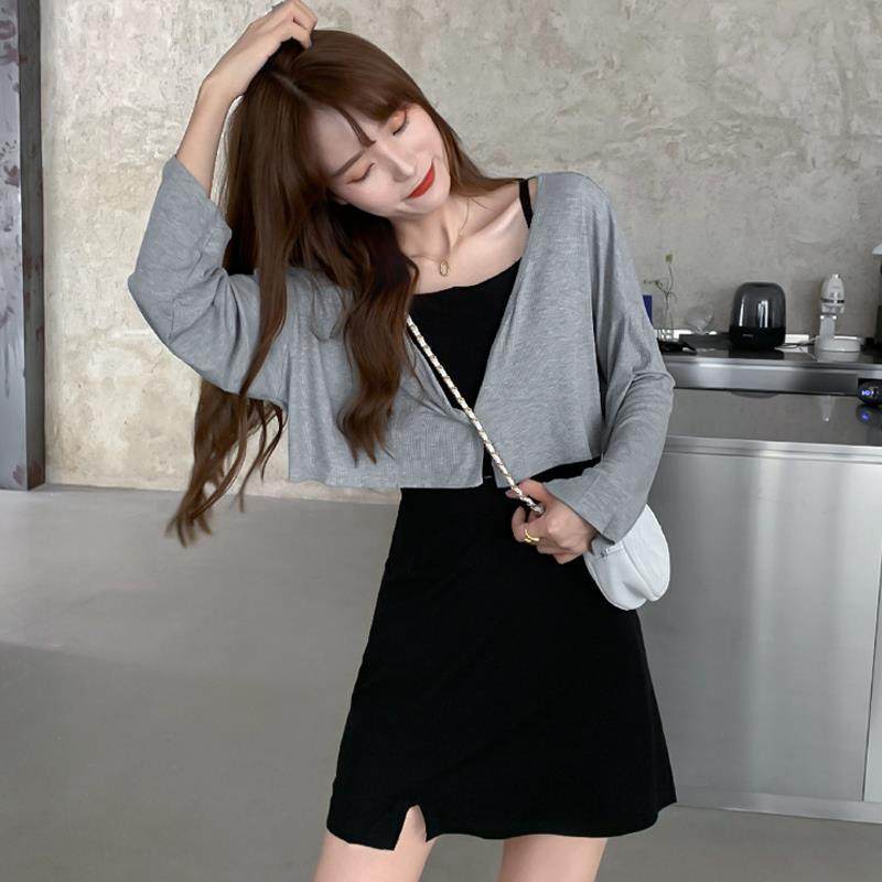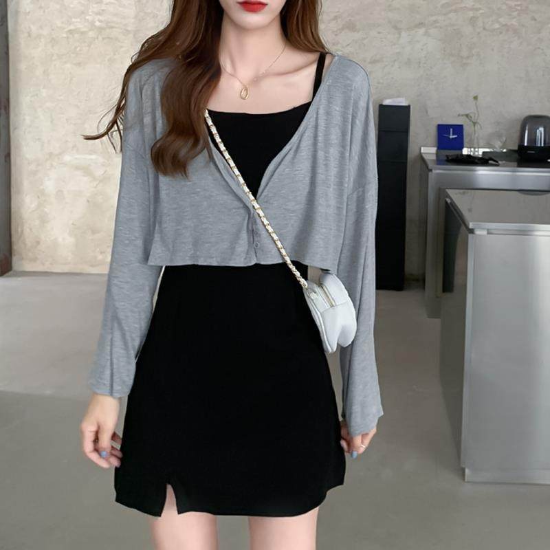 法式吊带连衣裙女春2026新款修身显瘦小个子夏季气质黑色开叉裙子