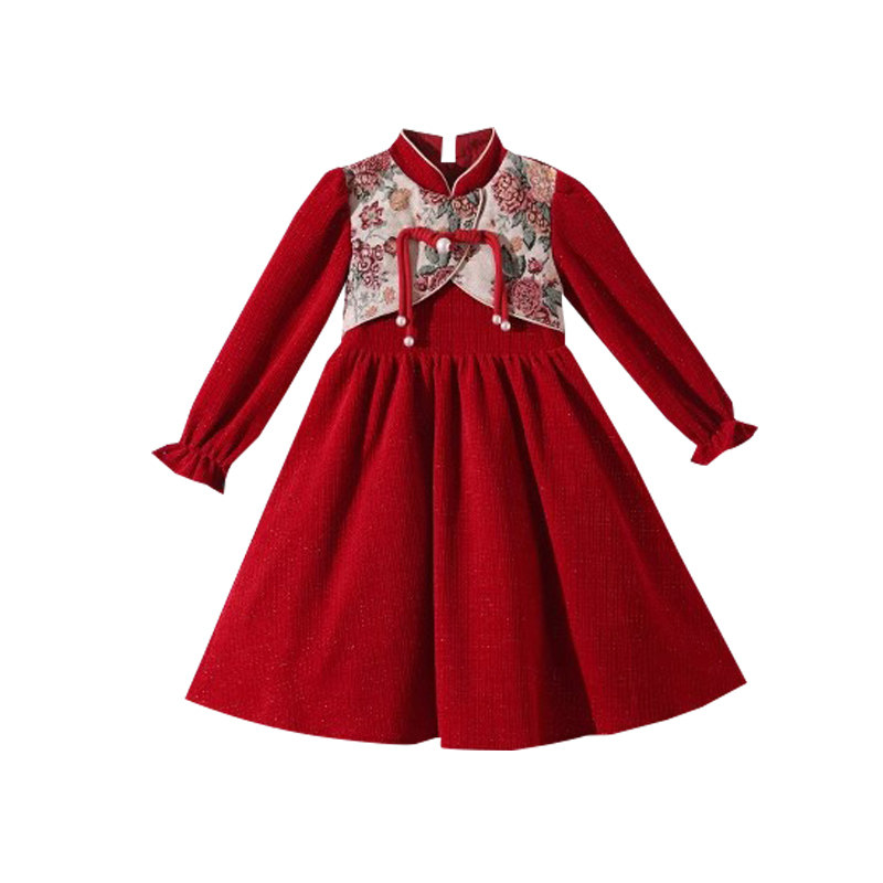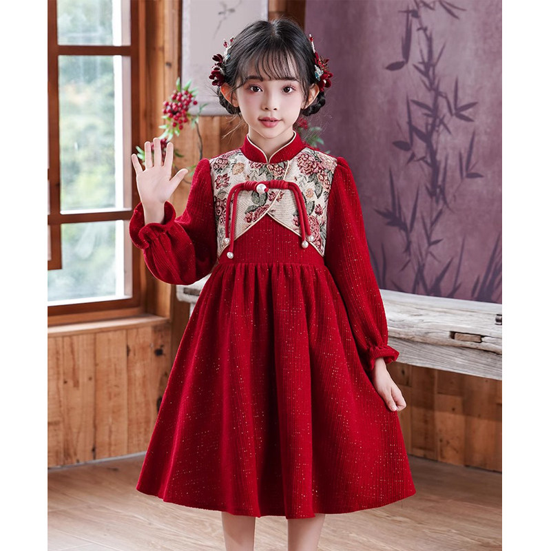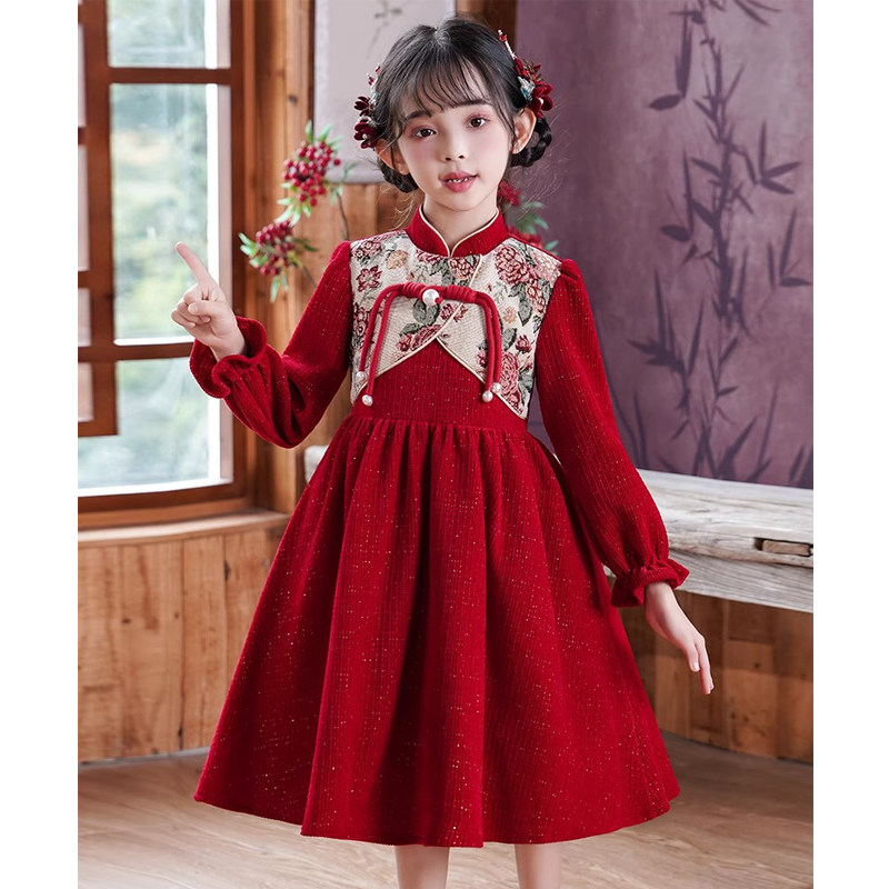 女童连衣裙秋冬2026新款儿童红色公主裙子小女孩中国风洋气新年装