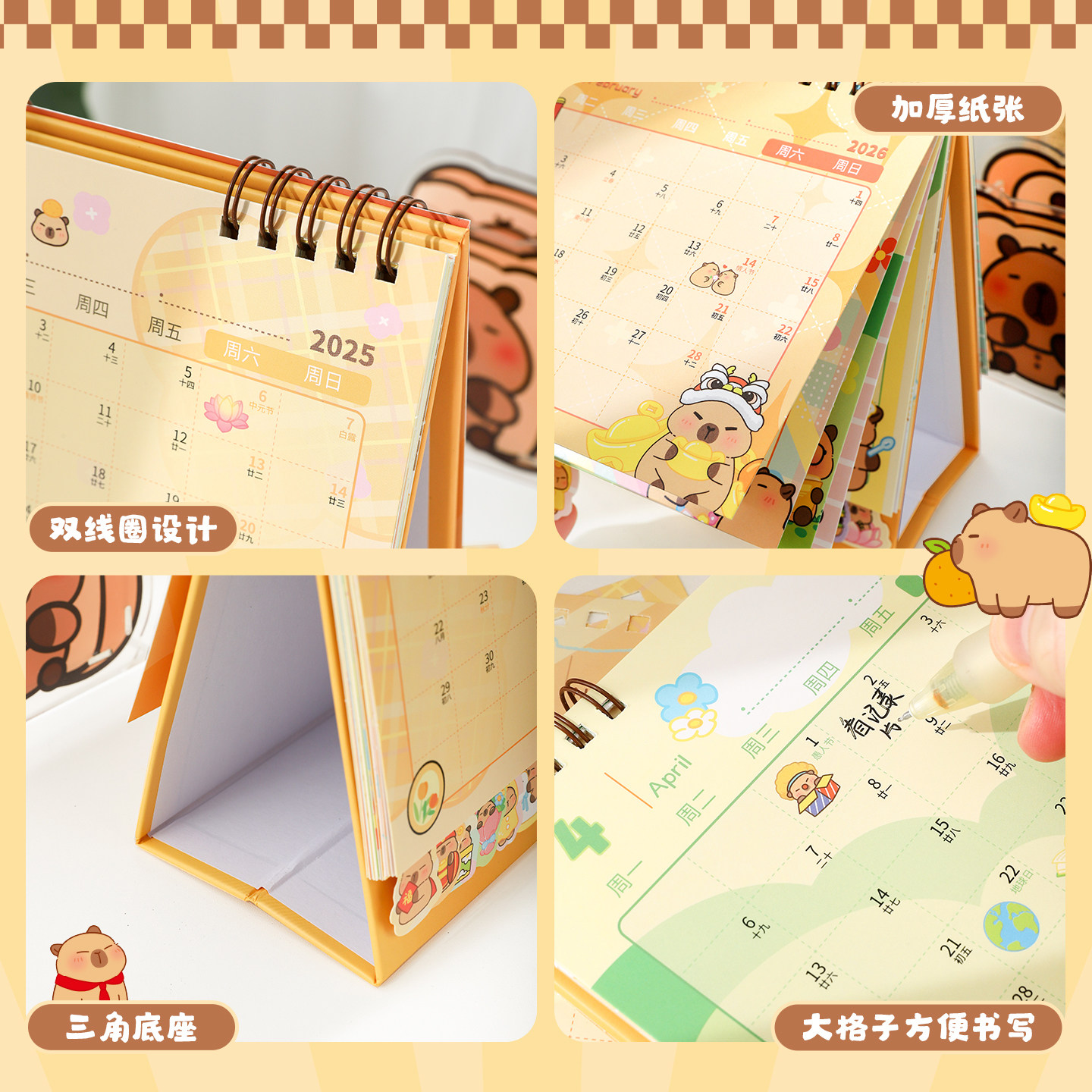 卡皮巴拉台历2026年新款日历本马年创意桌面摆件中高考考研倒计时记事本备忘录计划本商务办公打卡月历万年历