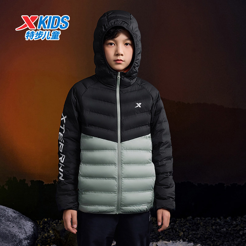 特步童装儿童厚款羽绒服2026秋冬新款男童连帽外套中大童保暖冬装