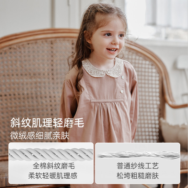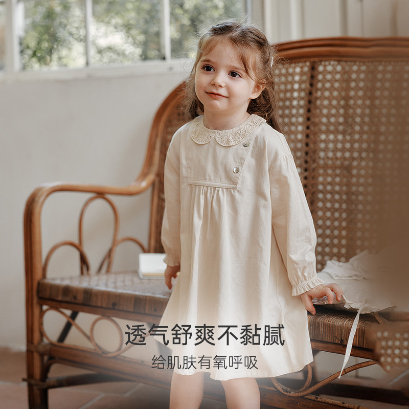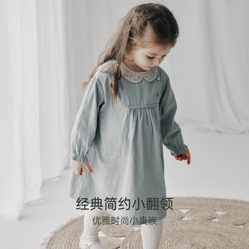 Oak Family秋季儿童长袖连衣裙女童全棉轻绒女宝宝裙翻领公主裙