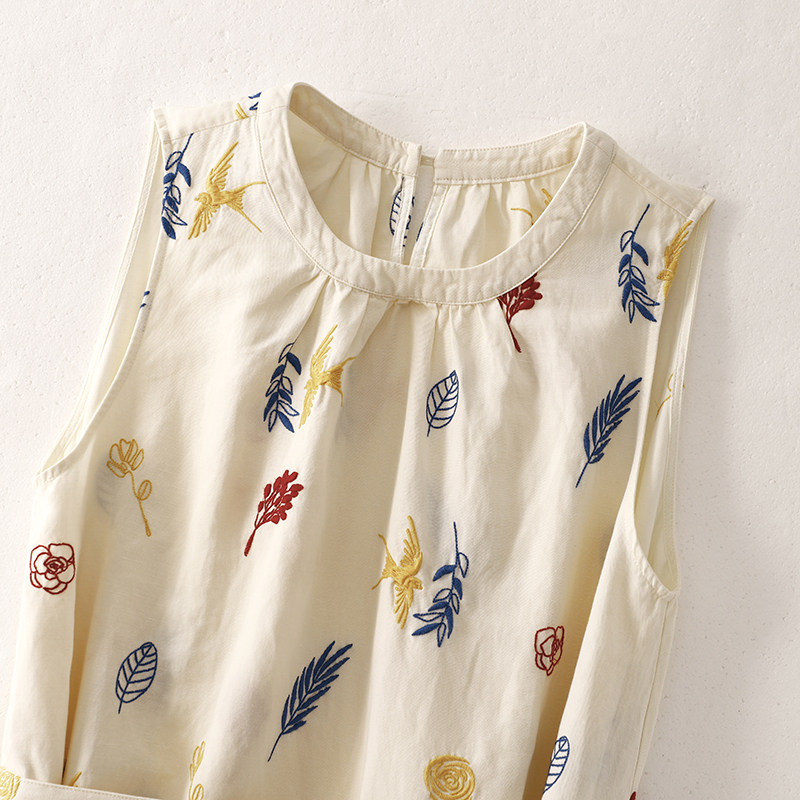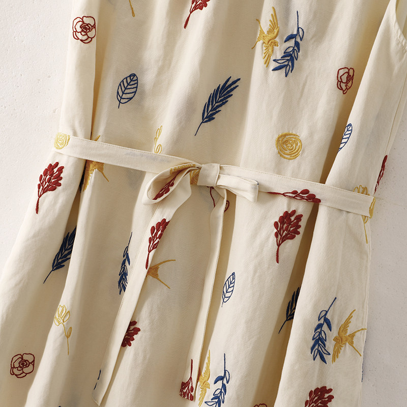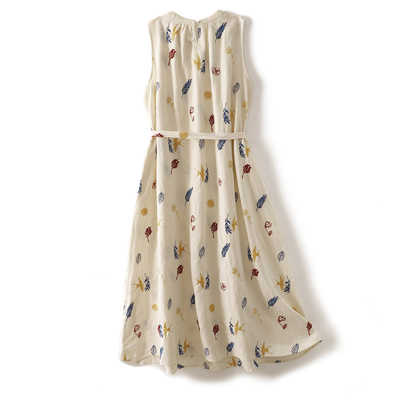 海边度假甜美减龄棉麻背心裙女夏季收腰系带休闲无袖刺绣连衣裙潮